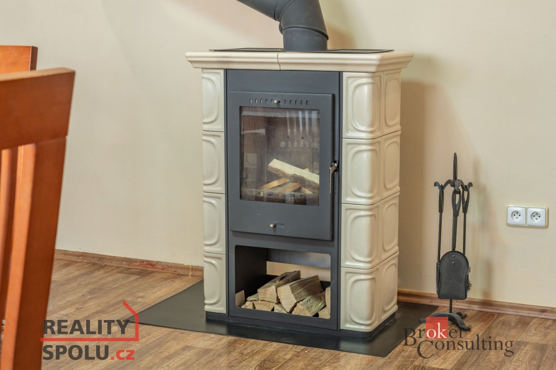 V patře je také další samostatný pokoj, který je momentálně využívaný jako společenská místnost.