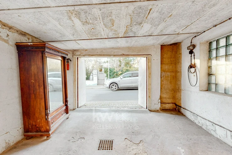 The charm of the property is enhanced by a garden with mature greenery and the quiet environment of a popular Prague neighborhood, which offers privacy and easy access to the city center.