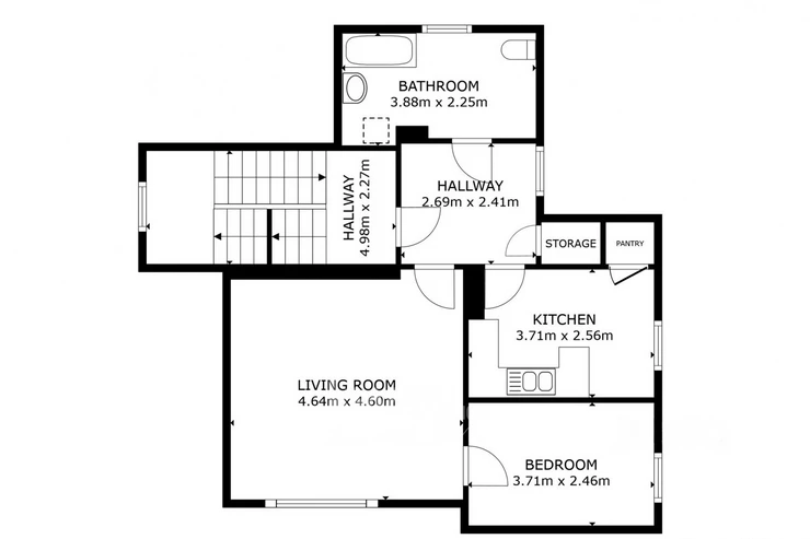 Apartment No. 2 (2+1, approx. 56 m²) – 1st floor, in good condition.