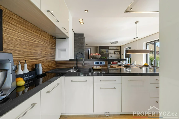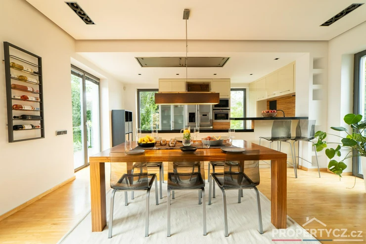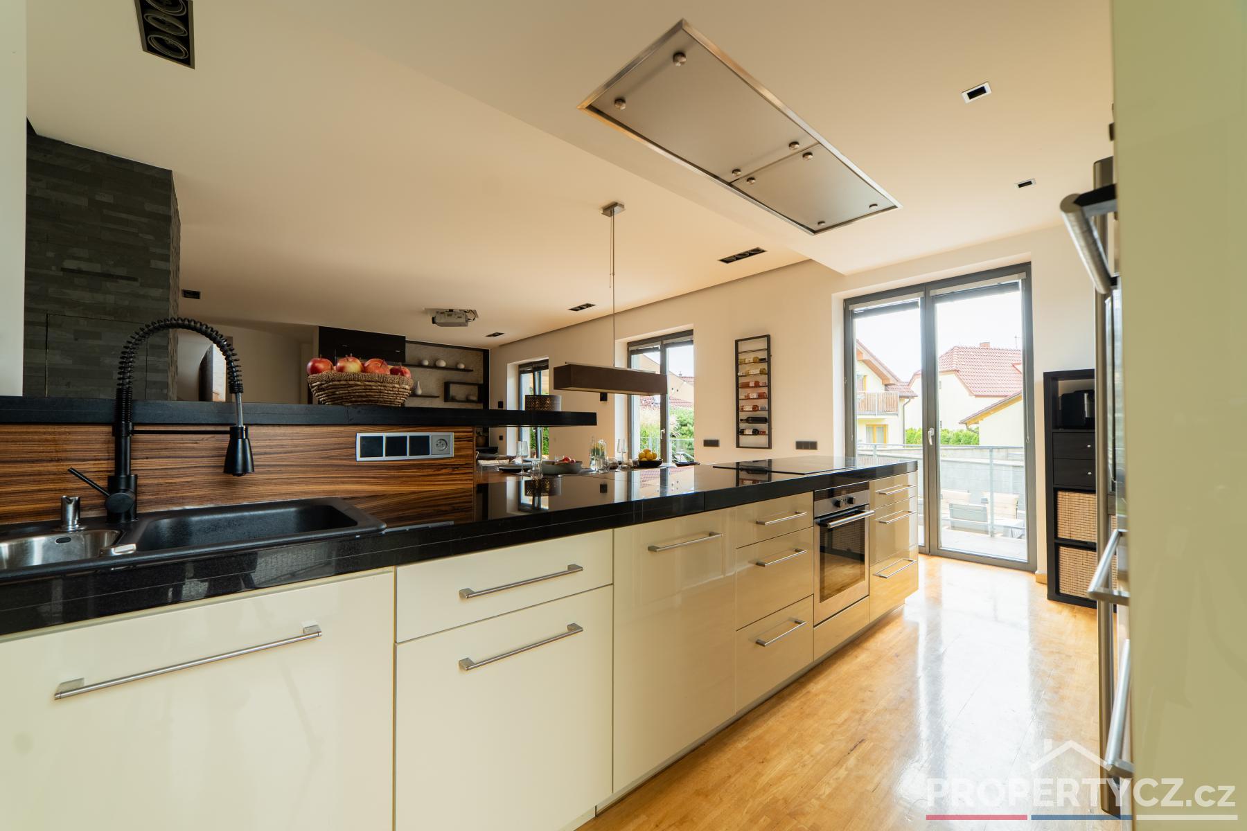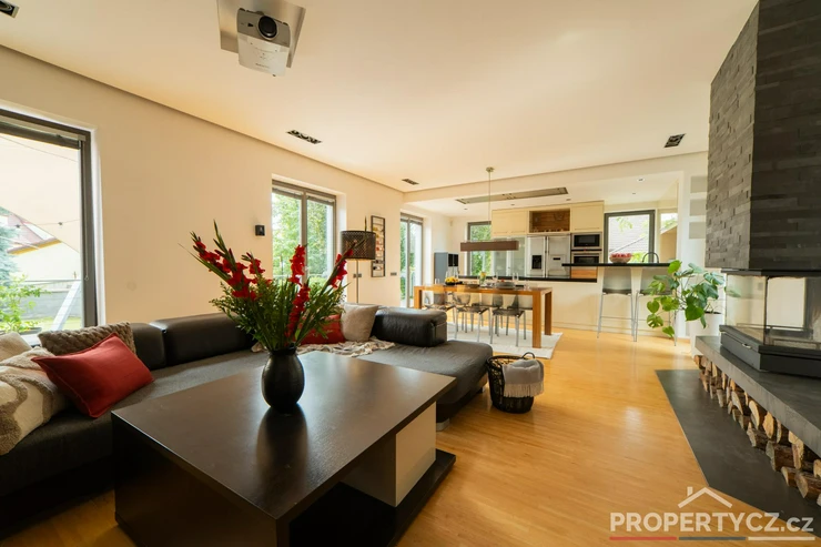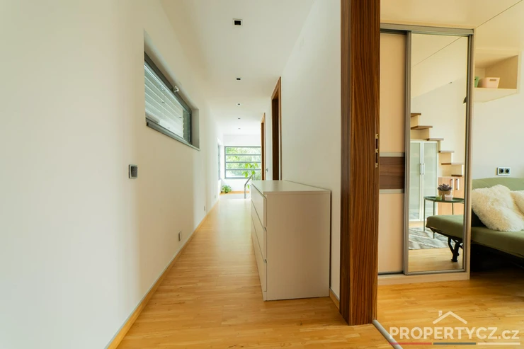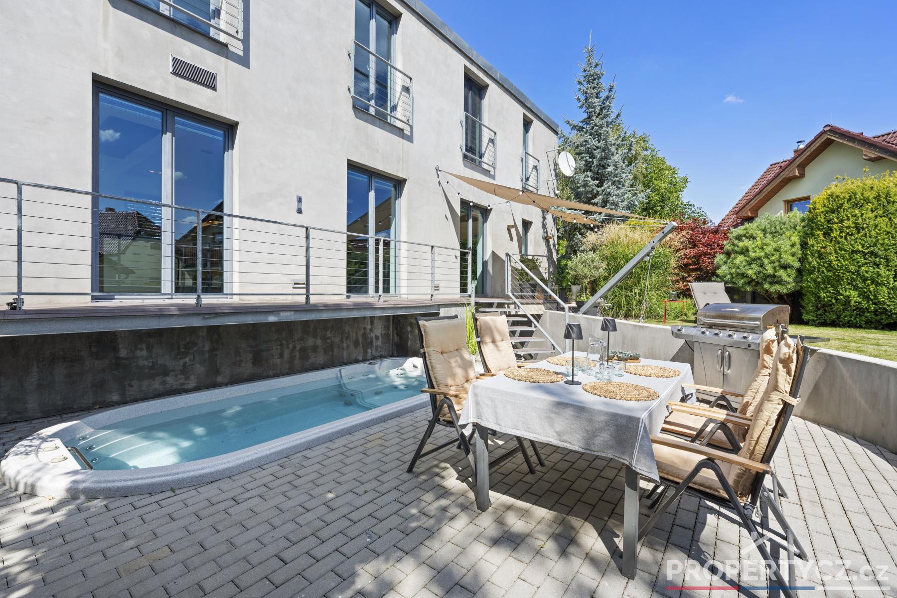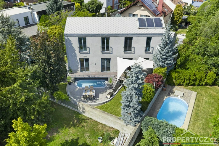 Stavba z roku 2005 nabízí moderní technologie pro úsporný provoz domácnosti. V celém domě je podlahové topení, solární panely pro termický ohřev vody, kamerový a zabezpečovací systém, venkovní centrálně ovládané žaluzie, velkoformátové interiérové dveře, na zahradě automatická závlaha, vířivka s ohřevem na vnitřní plynovou cirkulaci domu a spousta dalších užitečných vychytávek pro příjemný život.