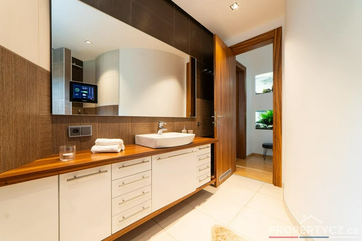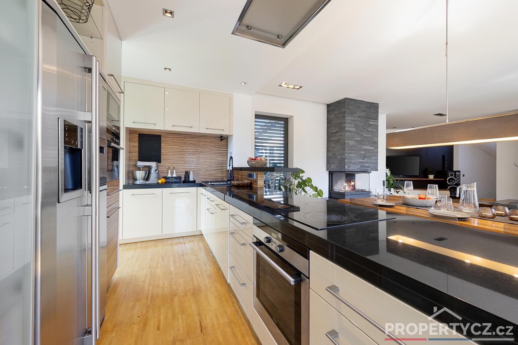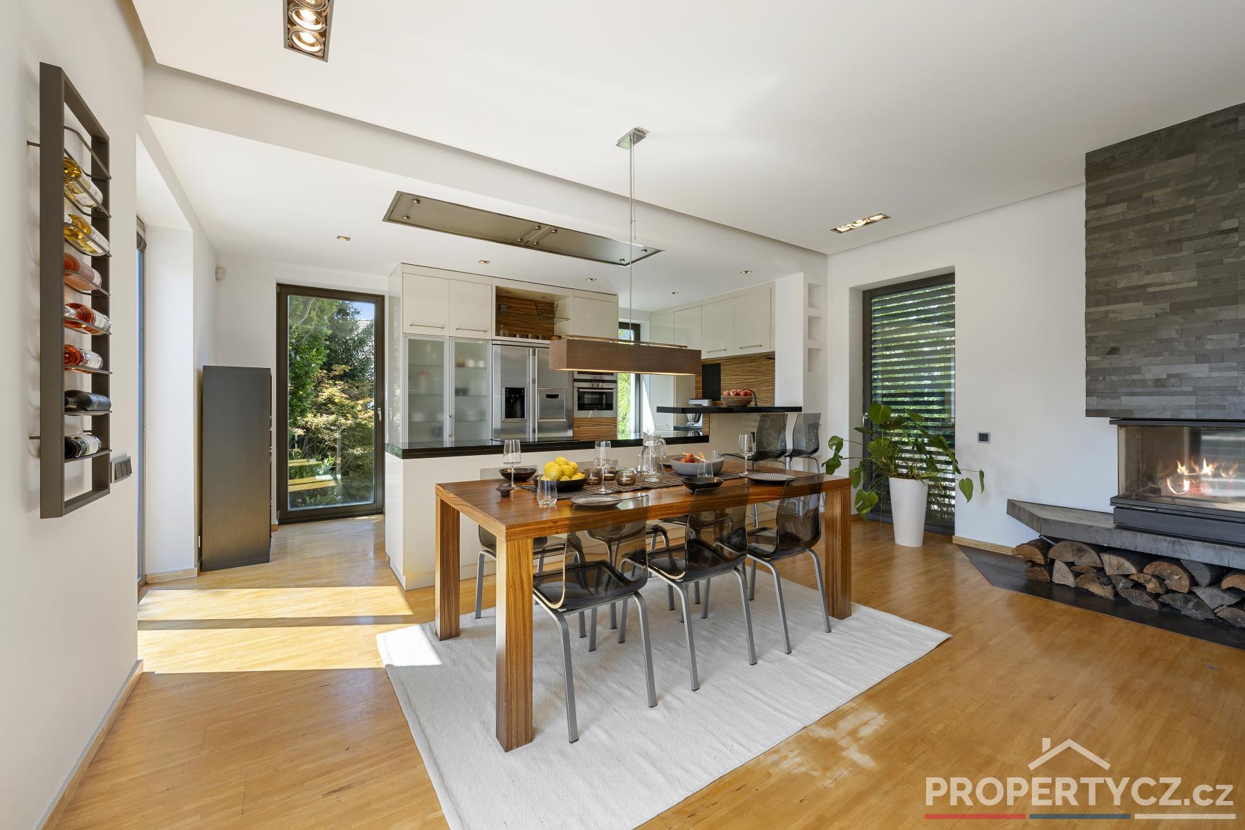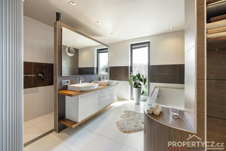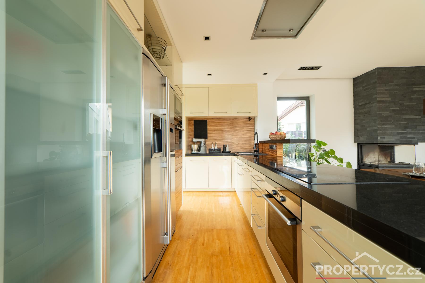 Stavba z roku 2005 nabízí moderní technologie pro úsporný provoz domácnosti. V celém domě je podlahové topení, solární panely pro termický ohřev vody, kamerový a zabezpečovací systém, venkovní centrálně ovládané žaluzie, velkoformátové interiérové dveře, na zahradě automatická závlaha, vířivka s ohřevem na vnitřní plynovou cirkulaci domu a spousta dalších užitečných vychytávek pro příjemný život.