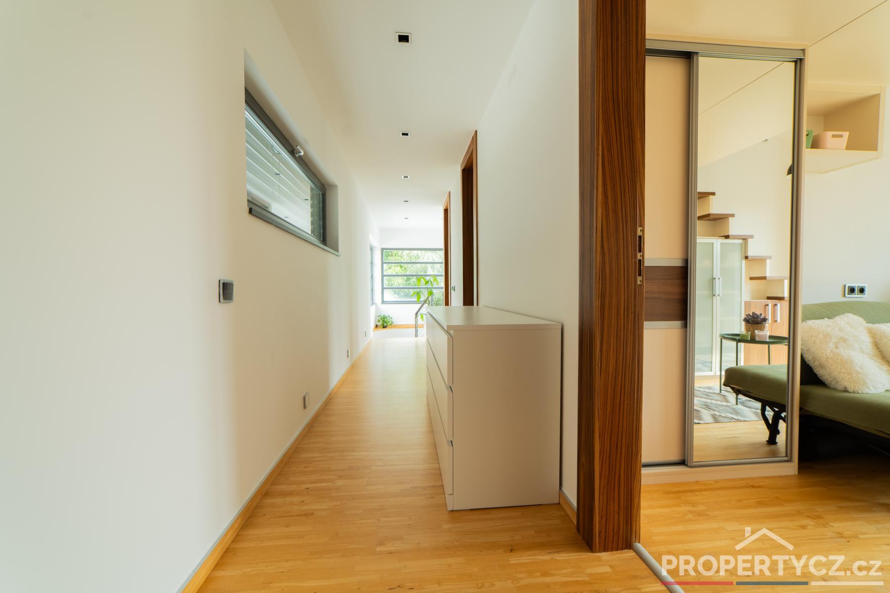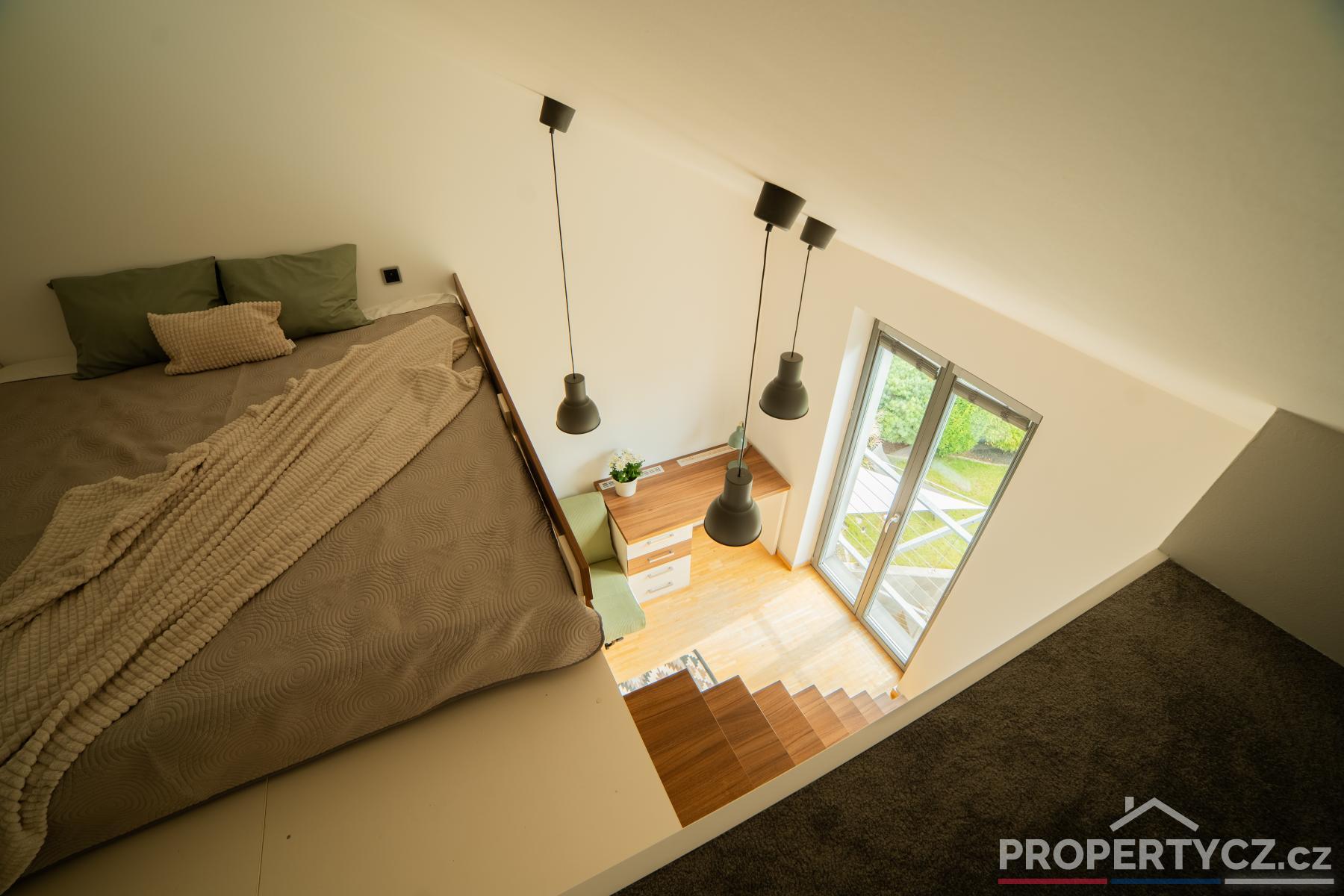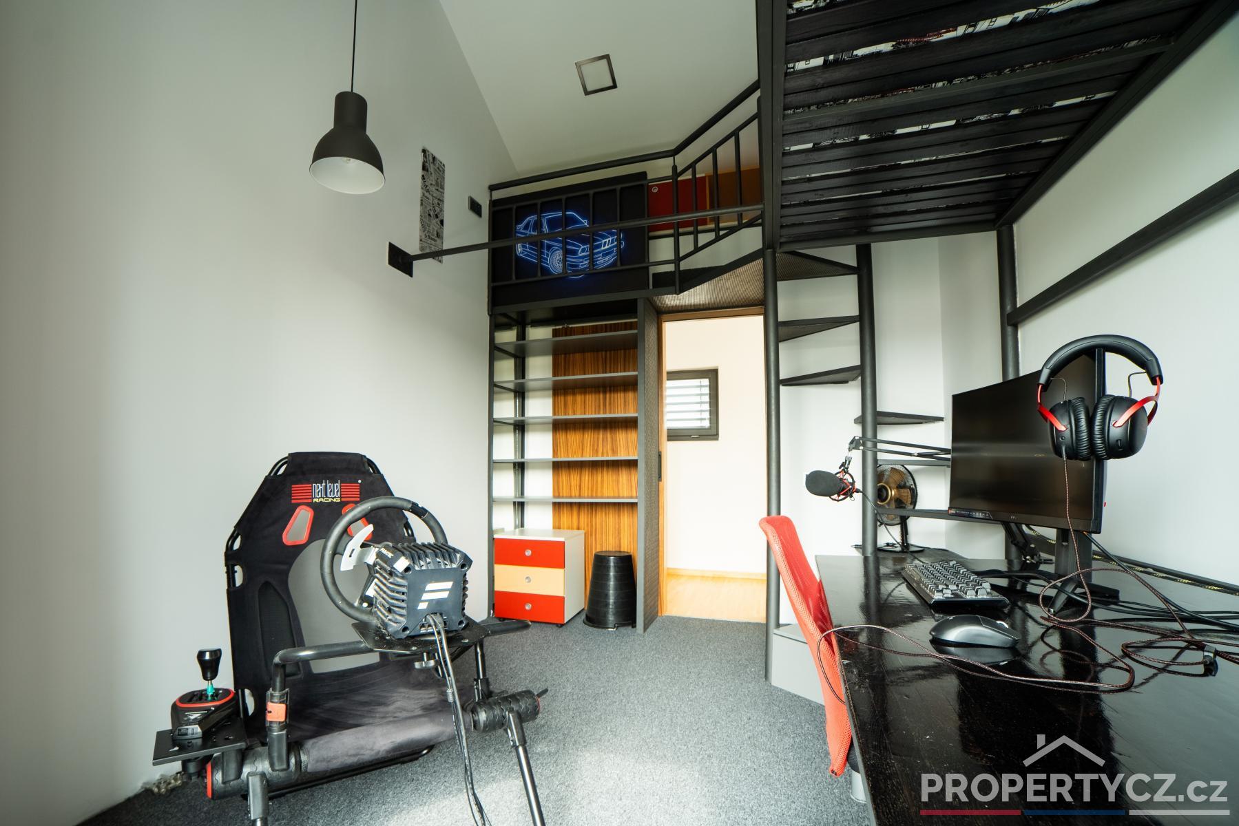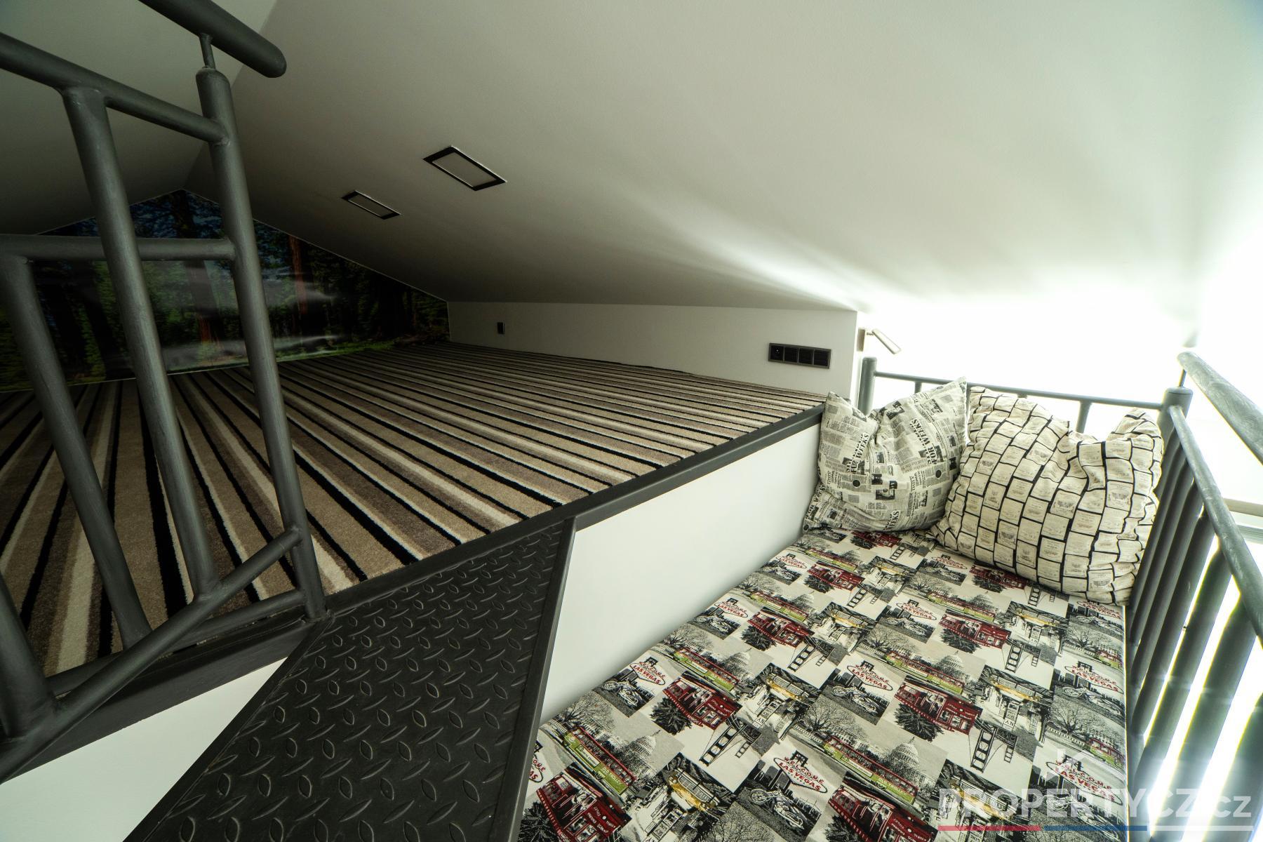 Druhé patro tvoří obytná část a nacházejí se zde 3 pokoje, hlavní ložnice se šatnou, další 2 studentské či dětské pokoje s chytře řešeným patrem pro rozšíření prostoru, samostatná koupelna s vanou, sprchou a WC.