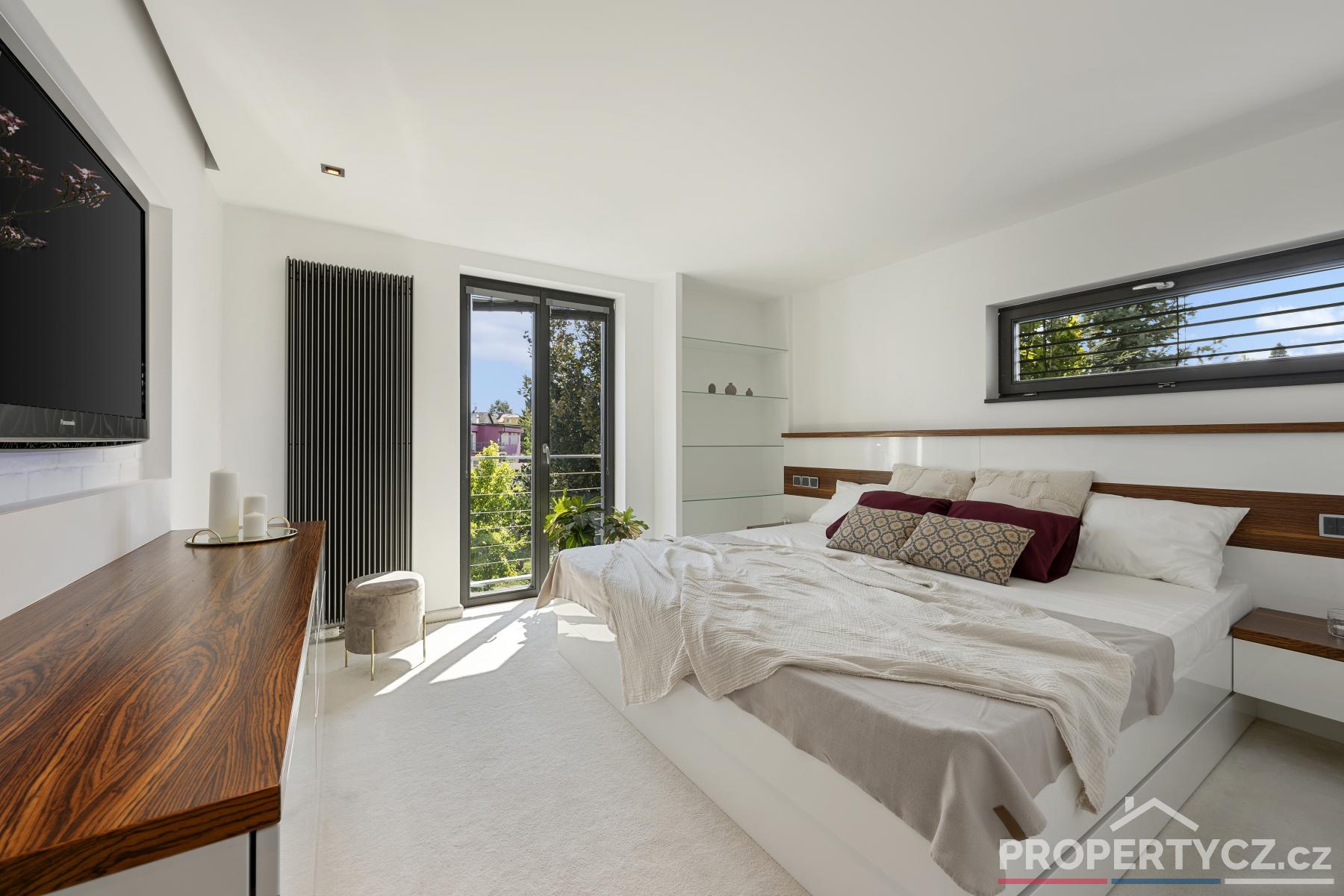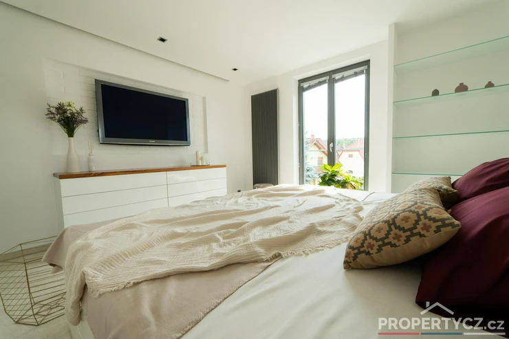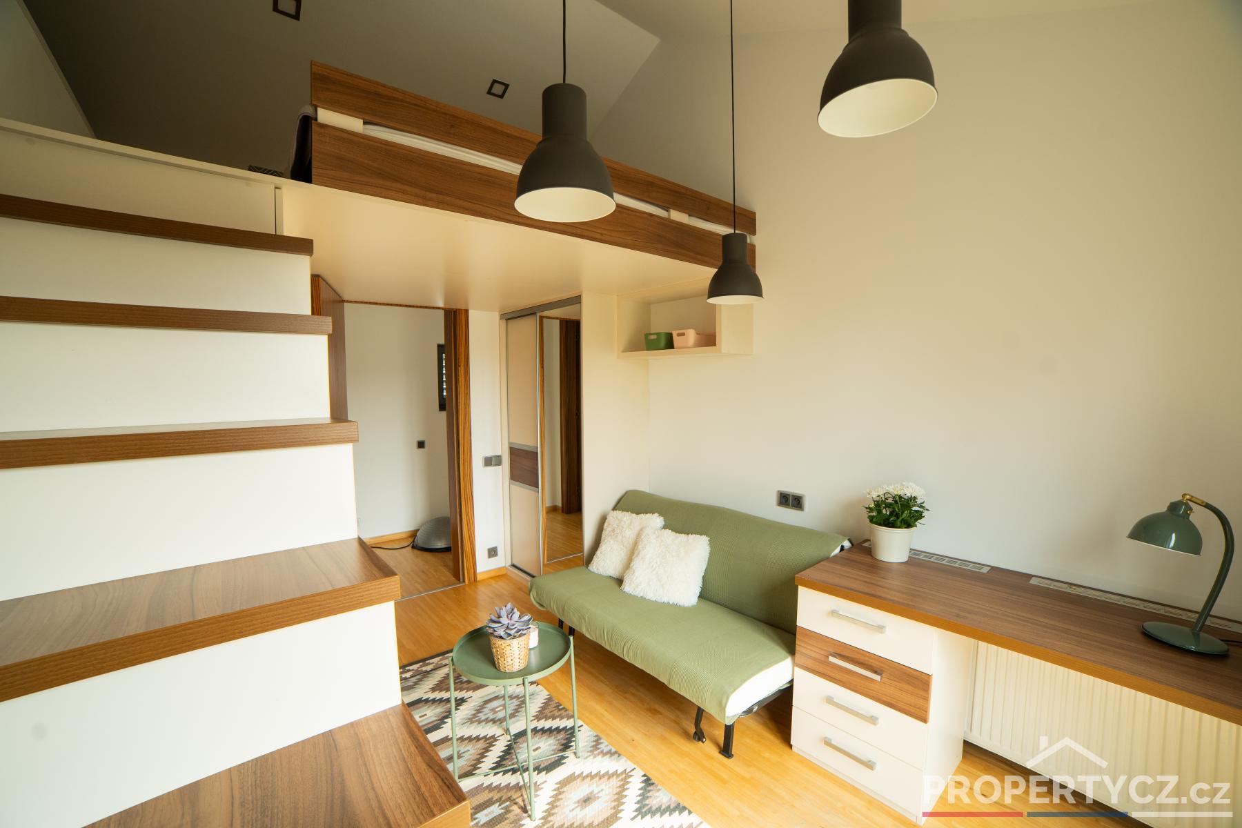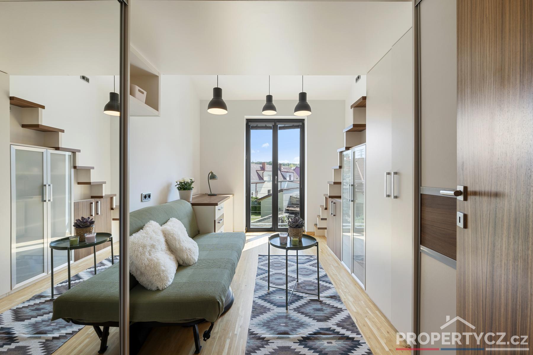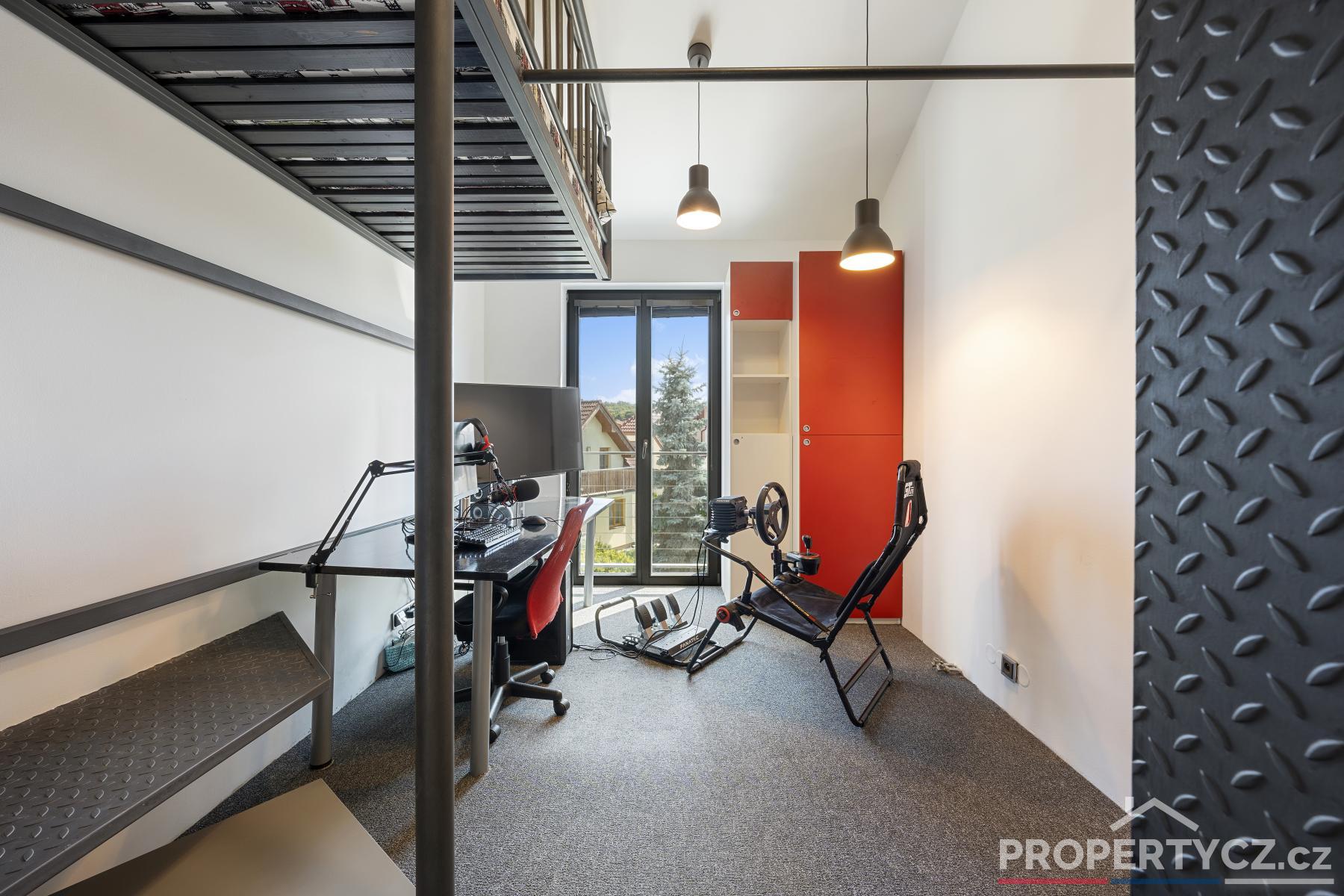 Druhé patro tvoří obytná část a nacházejí se zde 3 pokoje, hlavní ložnice se šatnou, další 2 studentské či dětské pokoje s chytře řešeným patrem pro rozšíření prostoru, samostatná koupelna s vanou, sprchou a WC.