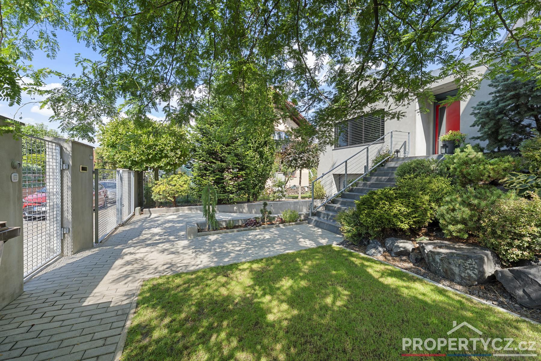 Vlastní pozemek o 520m2 s prakticky založenou zahradou a okrasnými stromy, vzrostlým trávníkem a terasami vybízí k odpočinku a užívání si volného času.