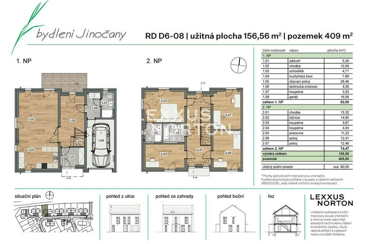 The Bydleni Jinocany project is entering its new and final phase of family home construction.The homes follow on from previous successful stages that completely sold out. They maintain the proven quality of construction while introducing smarter layouts and a higher standard of finish. The project is backed by an Irish investment group led by architect and developer Ambrose F. Kelly, who emphasizes not only high-quality execution but also the harmonious urban design of the entire area.This 5-bedroom, 3-bathroom family home offers a total living space of 156.56 sqm across two floors. The layout includes four bedrooms, three bathrooms, a spacious open-plan living room with kitchen, a utility room, and two hallways. The property also includes a private garage, a pitched roof with attic storage, and a 409 sqm garden plot.The Bydleni Jinocany development is located in an attractive area with excellent access to Prague and Vaclav Havel Airport. Bus and train stops are within walking distance — reach metro line B at Zlicin in just 9 minutes or Smichovske nadrazi in 19 minutes. The surrounding area offers full civic amenities including a newly renovated primary and nursery school. Local cycle paths, a natural swimming area, and plenty of greenery invite an active and relaxed lifestyle.If you're looking for comfortable family living within easy reach of Prague, this phase is an ideal opportunity.Photos shown are for illustrative purposes and feature completed homes from previous phases of the project.