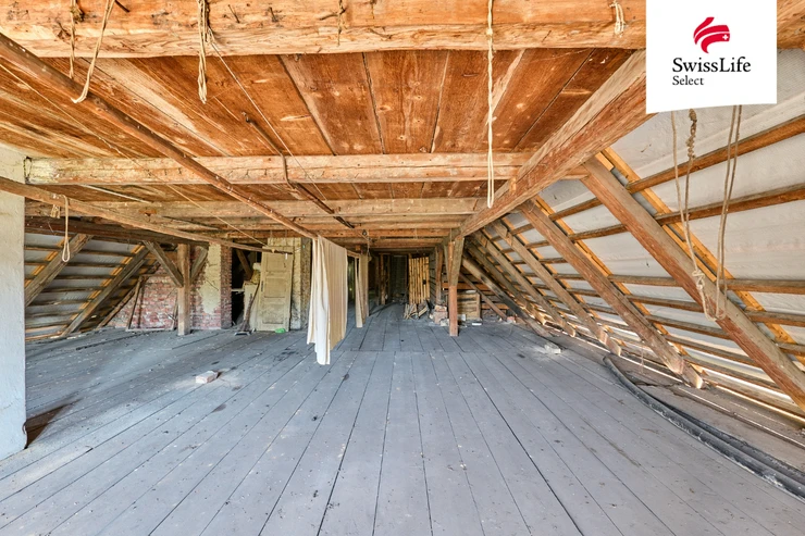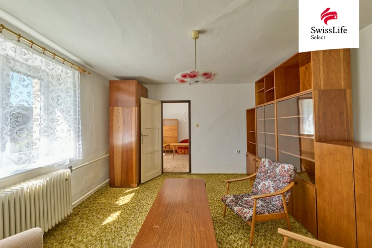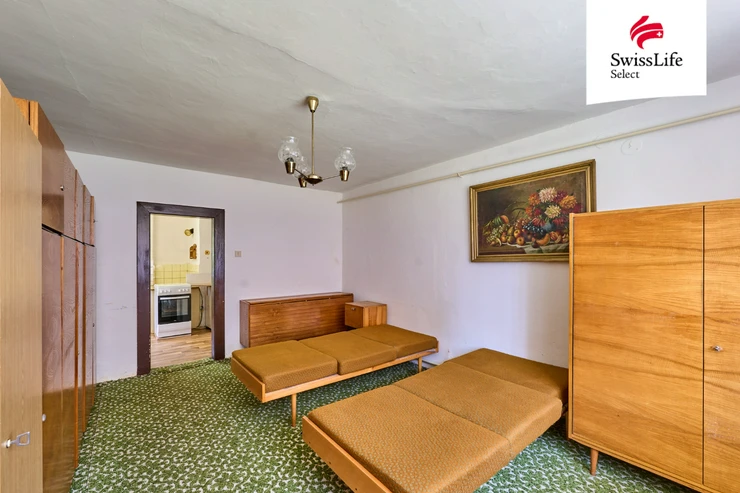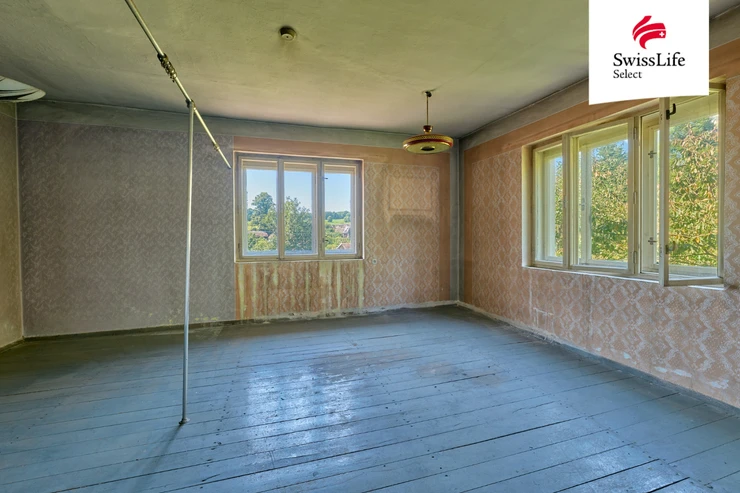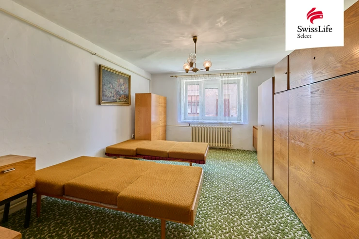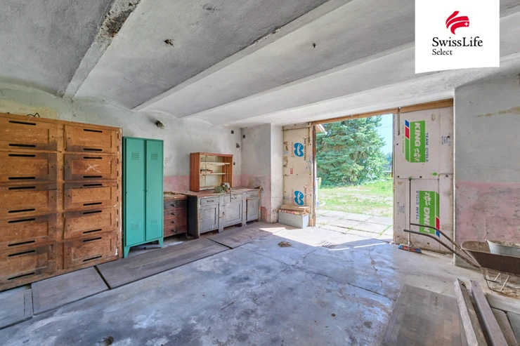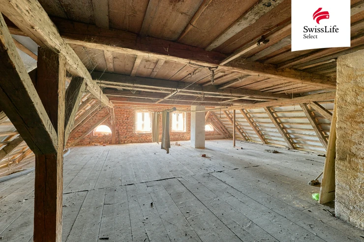 Built approximately 100 years ago, the house has retained its historic charm to this day. The ground floor offers a spacious 4+1 layout, ideal for comfortable family living, and the upper floor features a 1+1 apartment. The property also includes a number of utility spaces that will make everyday life easier – a cellar, drying room, coal room, pantry, garage, and two storage rooms. Above everything lies a generous attic area, perfect for conversion into a cosy loft, home office, or children’s playroom.