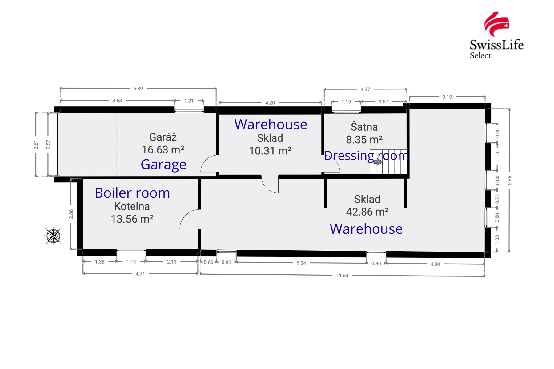 Basement: garage, workshop, utility room with boiler, 2 storage rooms, cloakroom.