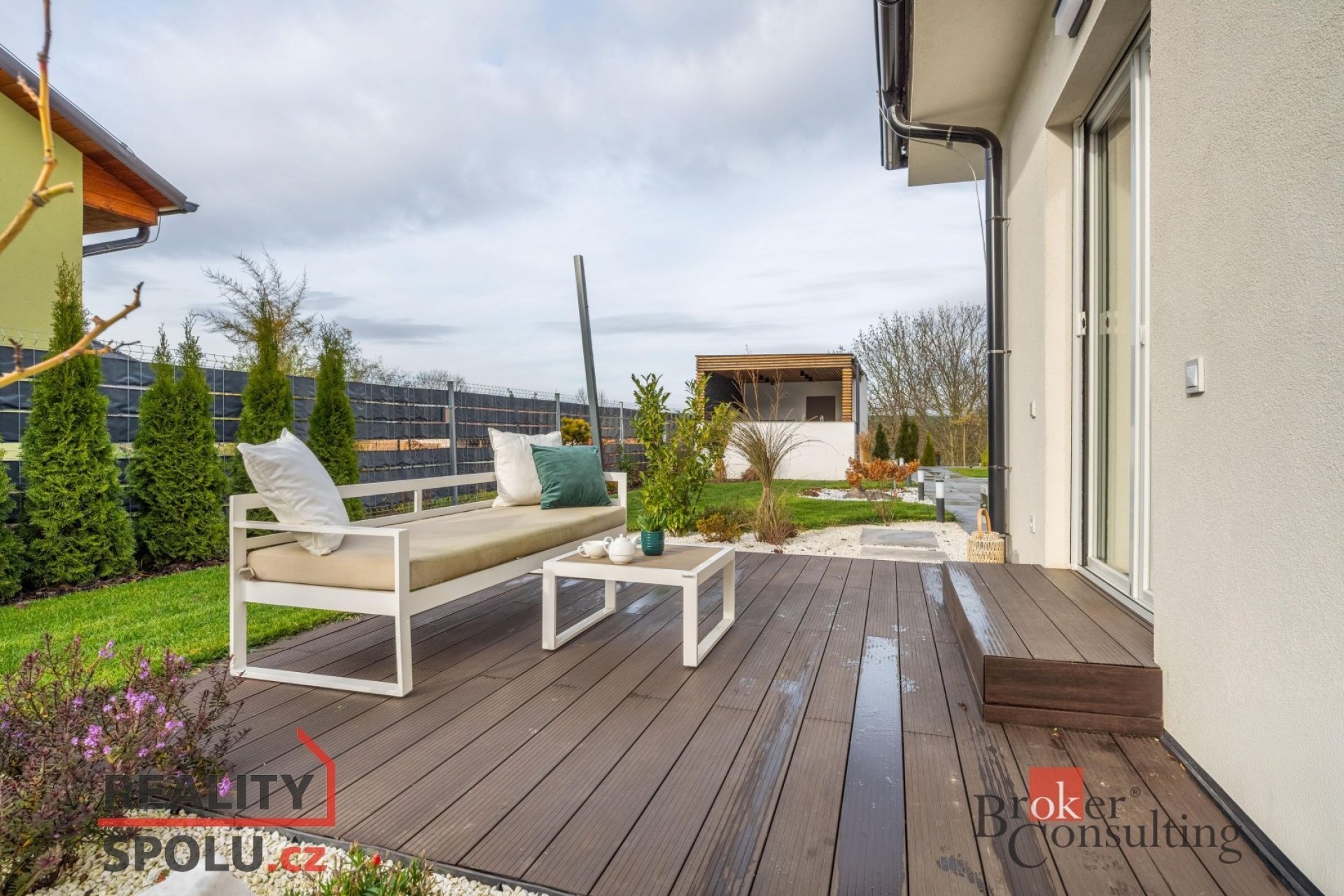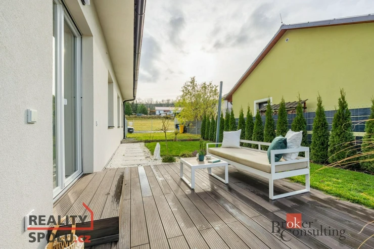 Nabízíme k prodeji moderní rodinný dům o dispozici 4+kk a obytné ploše 102,3m², který byl postaven v roce 2021 v obci Žižice – Drnov.