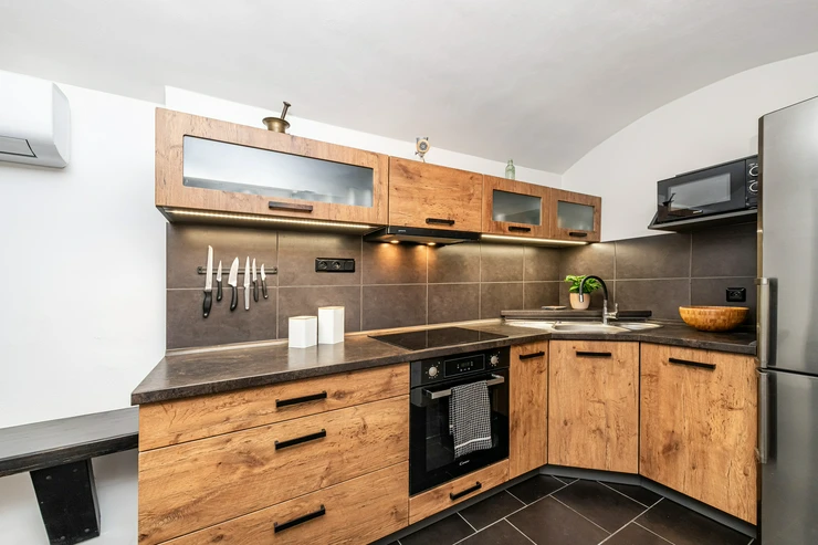 kitchen with direct access to the courtyard – the perfect spot to enjoy your morning coffee in the fresh air