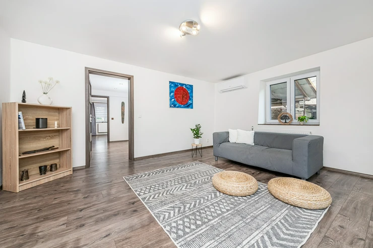 The layout is very practical, offering comfortable living even for a larger family. Two bathrooms and plenty of storage space add to the comfort of the house.