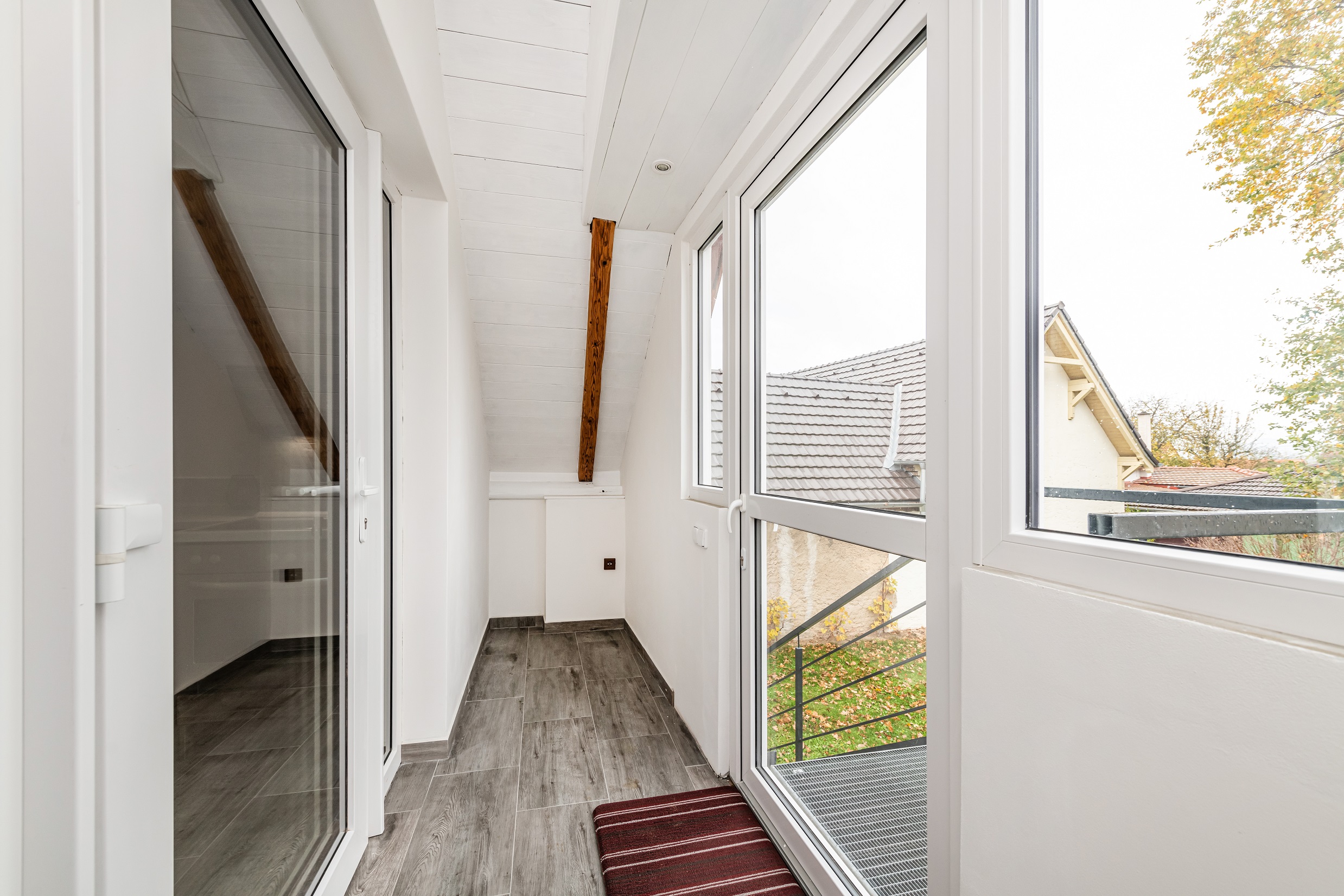 An outdoor staircase from the garden leads to the upper floor, where a self-contained attic apartment has been created.