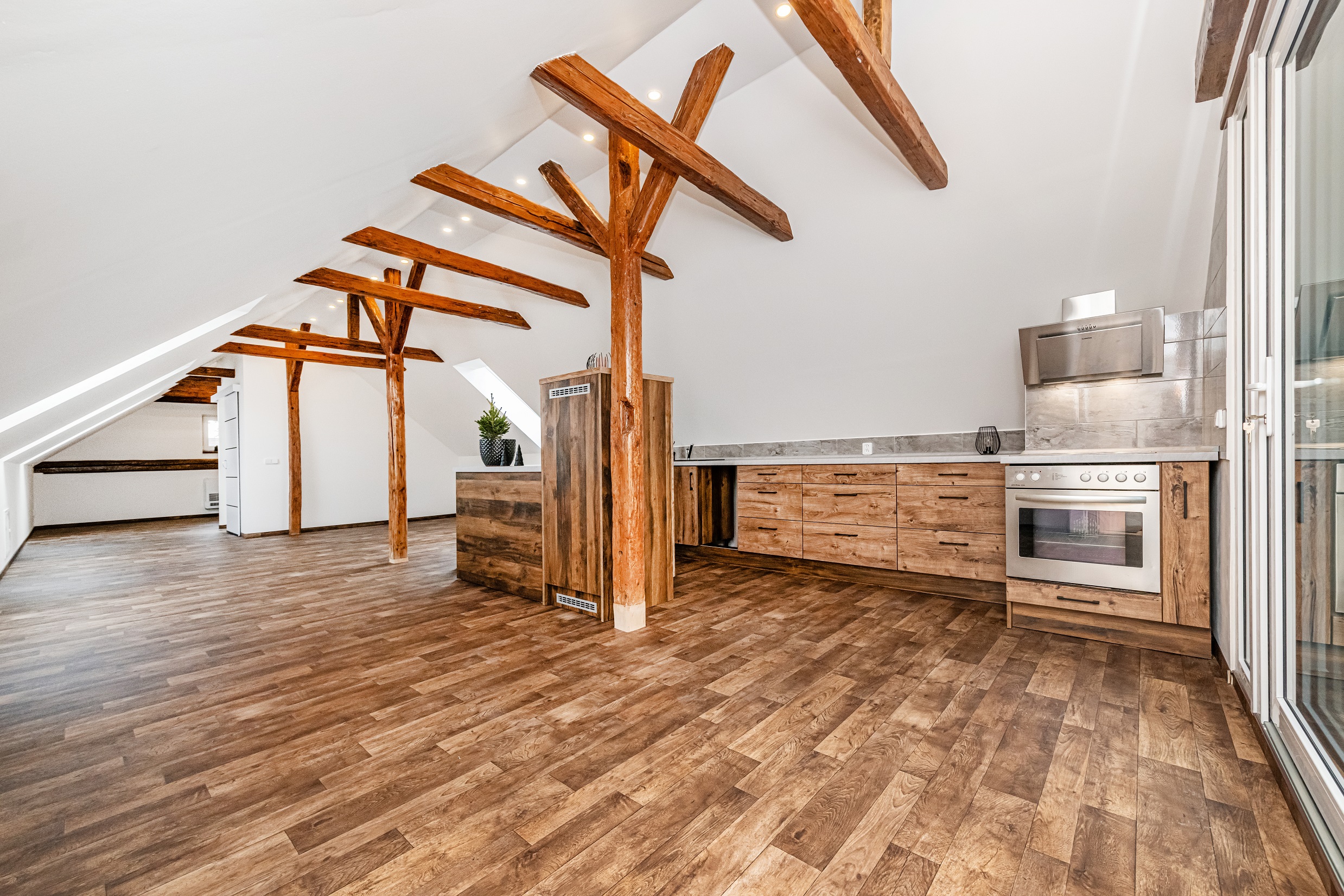 In the village of Nučničky, near Roudnice nad Labem, we are offering a renovated brick family house with a 4+1 layout, an attic apartment, and a garden with a swimming pool and pergola.