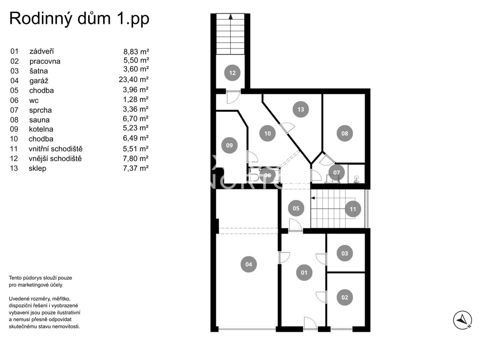 We are pleased to offer for sale a spacious 5-bedroom family house with a garden, located right in the center of Roudnice nad Labem. Currently used as company headquarters, this property is ideally suited for business operations, office spaces or service providers. Due to its impressive layout, it offers the option for full residential living or the blend of both residential and commercial use.On the ground floor of the house, there is a garage for one car, as well as an entrance hall where a reception area could be located. The ground floor offers plenty of storage space, as well as a sauna and access to the adjacent garden. On the first floor, you will find a spacious kitchen, a large living room, and a winter garden, from which you can also access the garden. On the second and third floors, there are a total of five rooms that can be used as bedrooms or offices. The windows throughout the house face both the street and the garden.The house is heated by a gas boiler. The rooms are fitted with heavy-duty carpeting suitable for office use. Each floor has a separate toilet and bathroom, which is a great advantage for combined use.The exterior of the house was renovated in 2025. The roof is covered by a PLUS warranty.The villa is located in quiet area in the center of the town with convenient access to various shops, supermarkets, restauarants, coffee shops, schools and kindergartens - everything is in walking distance. The town has good transport connections, commute to Prague's center approximately 30 minutes. Planned high-speed railway will additionaly offer a direct connection to the Masarykovo nadrazi station in approximately 19 minutes which will enhace the convenience and the value of the location. The villa offers oustanding versality and making it exceptional within the town.