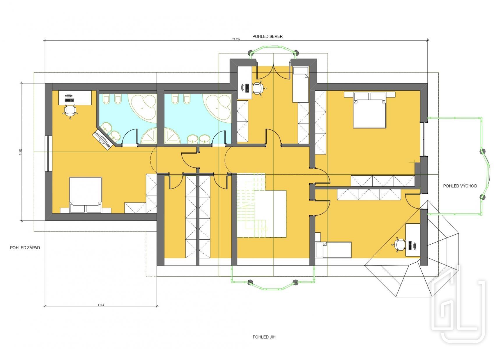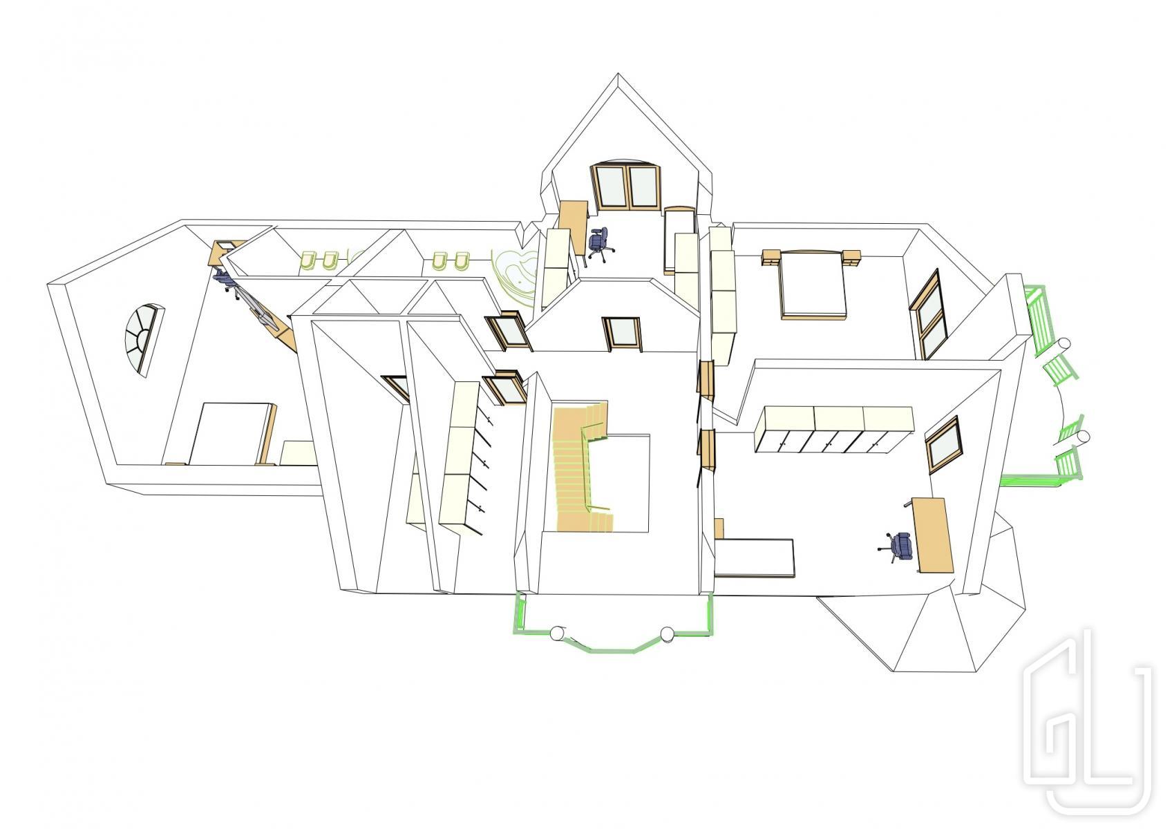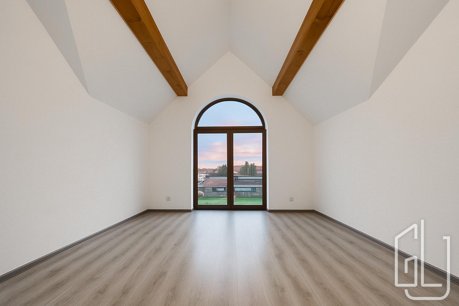 On the first floor there are four separate bedrooms, two walk-in wardrobes, two bathrooms with toilets and two balconies overlooking the garden and the surrounding countryside. The layout allows for a natural division between parents and childrens zones and offers plenty of privacy for each family member. The house has no basement; all living and technical facilities are practically arranged on the two above-ground floors.