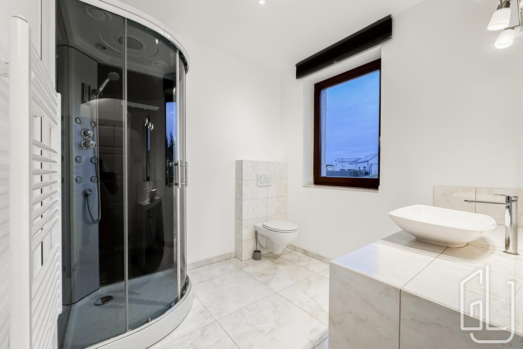 High-quality finishes include floating floors combined with large-format tiles, wooden euro-windows, an epoxy floor in the garage and a secure entrance door. The large, well-kept garden with lawn and terrace provides ample space for childrens play, relaxation or the future installation of a swimming pool.