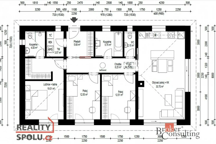 Dům o dispozici 4+kk s podlahovou plochou 107 m² je navržen tak, aby poskytoval maximální komfort pro rodinu. Dominantou je prostorný obývací pokoj s přímým vstupem na terasu a zahradu orientovanou do soukromí za domem. Velkou výhodou jsou také dvě koupelny, které výrazně zvyšují praktičnost domu.