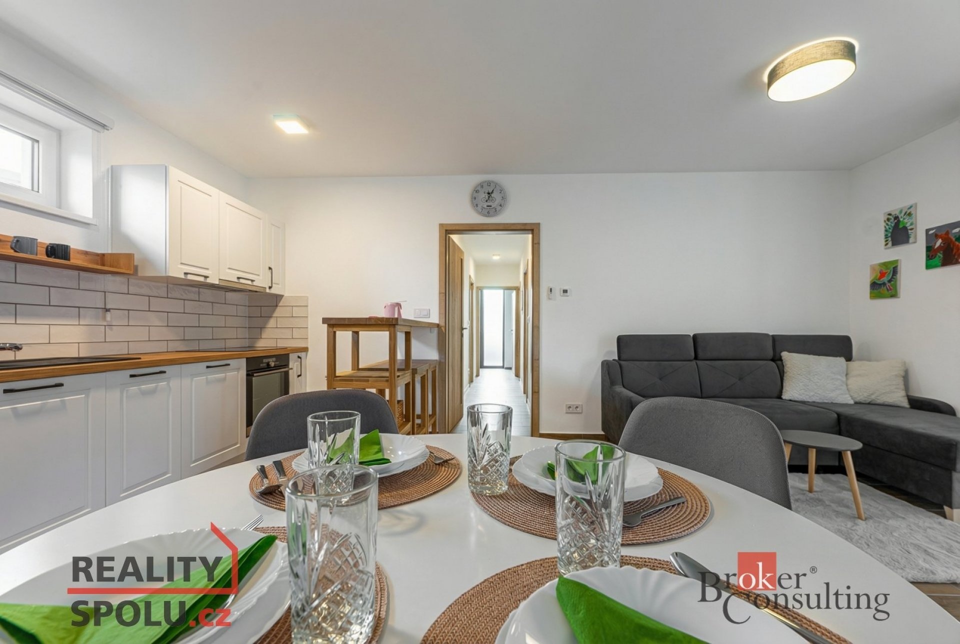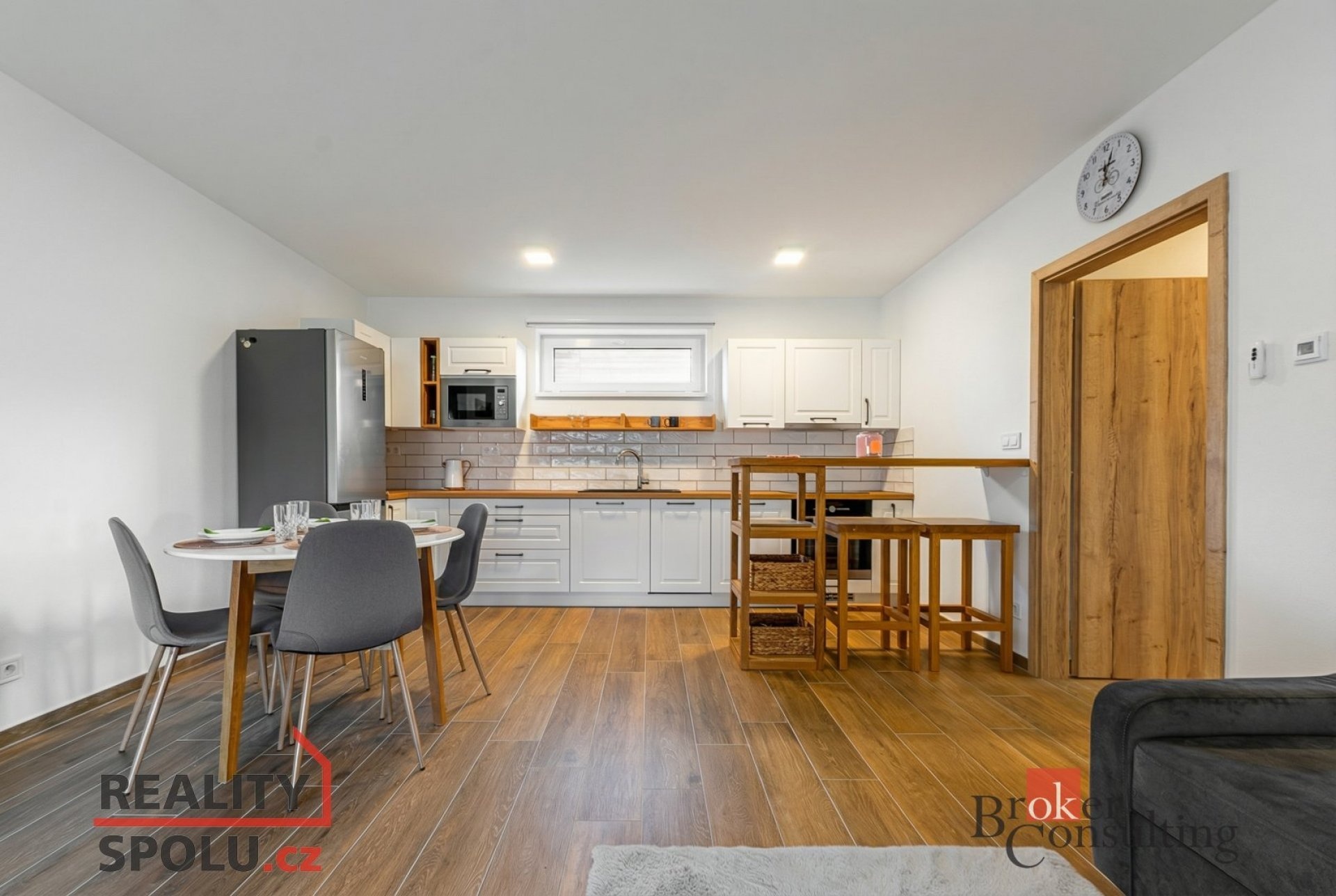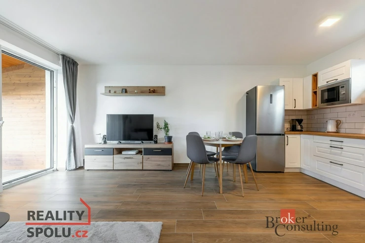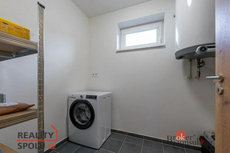 Součástí prodeje je kuchyňská linka se spotřebiči, vestavěný nábytek na míru v předsíni, internetové připojení včetně rozvodů ethernetu, elektrické venkovní rolety, sítě proti hmyzu, LED osvětlení a kamerový systém. K dispozici je také půdní úložný prostor cca 17 m².