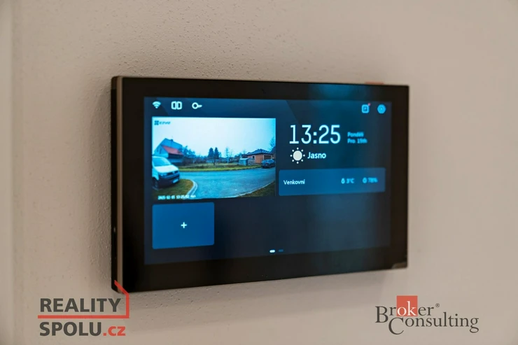 Mezi vybavení domu náleží například krbová vložka HAAS+SOHN, fotovoltaická elektrárna 10 kW, nabíječka na elektro auto v garáži, kuchyňská linka a spotřebiče SIEMENS a BOSCH, podlahové vytápění, tepelné čerpadlo REVEL, automatická závlaha zahrady, či kamerový systém.