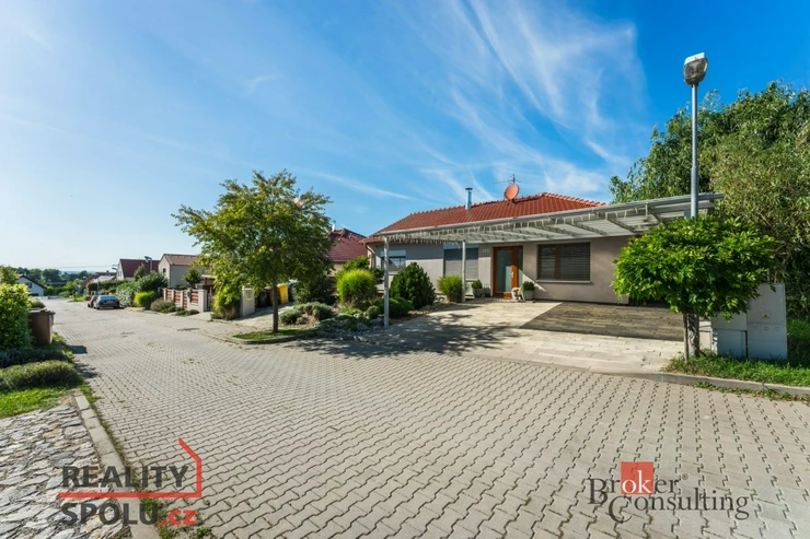 Příjezdová cesta umožňuje pohodlné parkování přímo před domem a celý dům je bezbariérový, což zajišťuje komfortní bydlení pro všechny věkové kategorie.