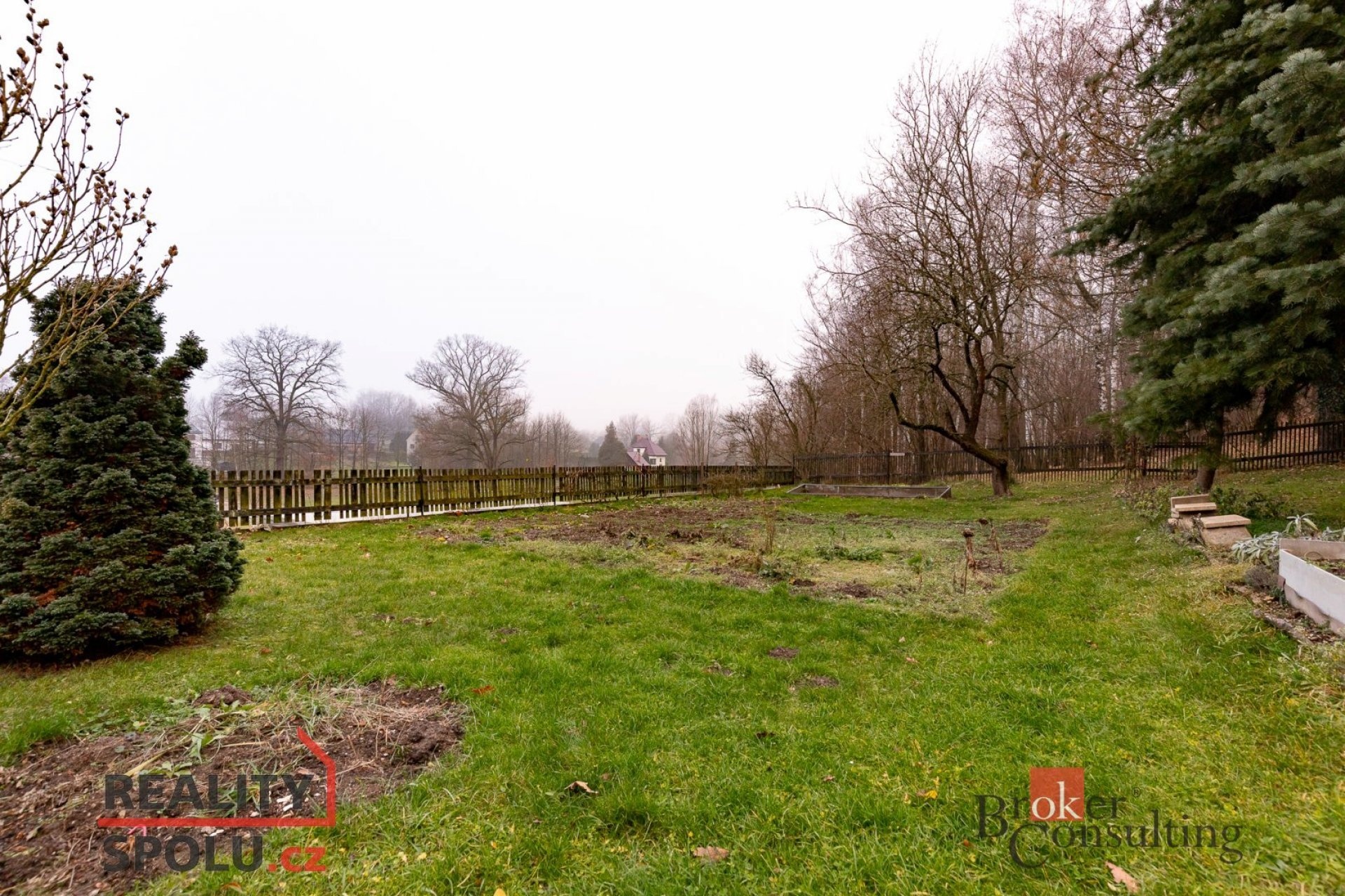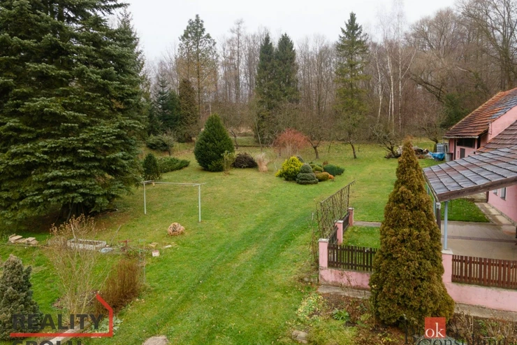 Součástí nemovitosti je zahrada o výměře 2 359 m² se vzrostlými stromy, které poskytují dostatek stínu i soukromí. Za domem navazuje les, takže jedinými „sousedy“ jsou zde především lesní zvířata.