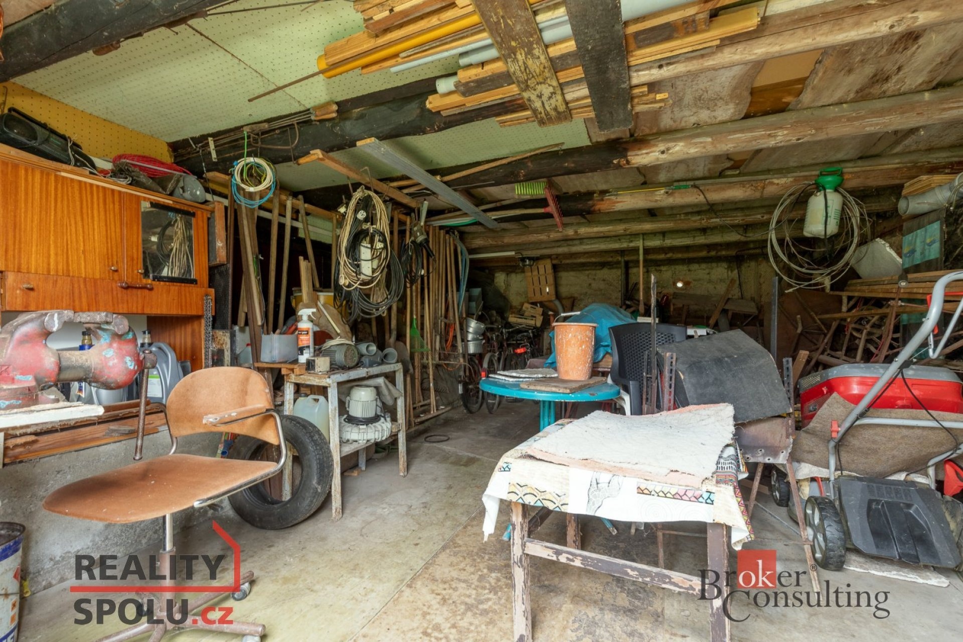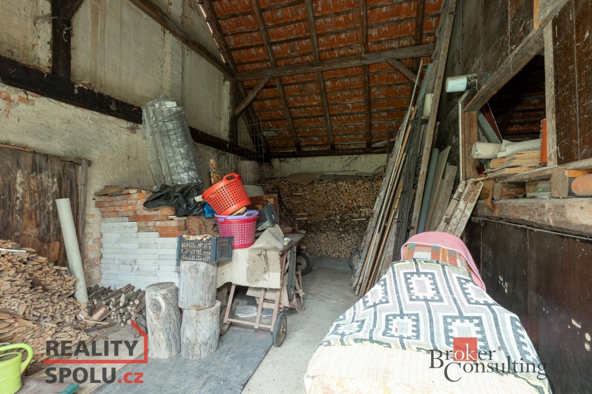 V prvním patře je půdní prostor, který nyní slouží jako sklad, avšak nabízí velký potenciál pro vybudování dalších prostorných ložnic či obytných místností.