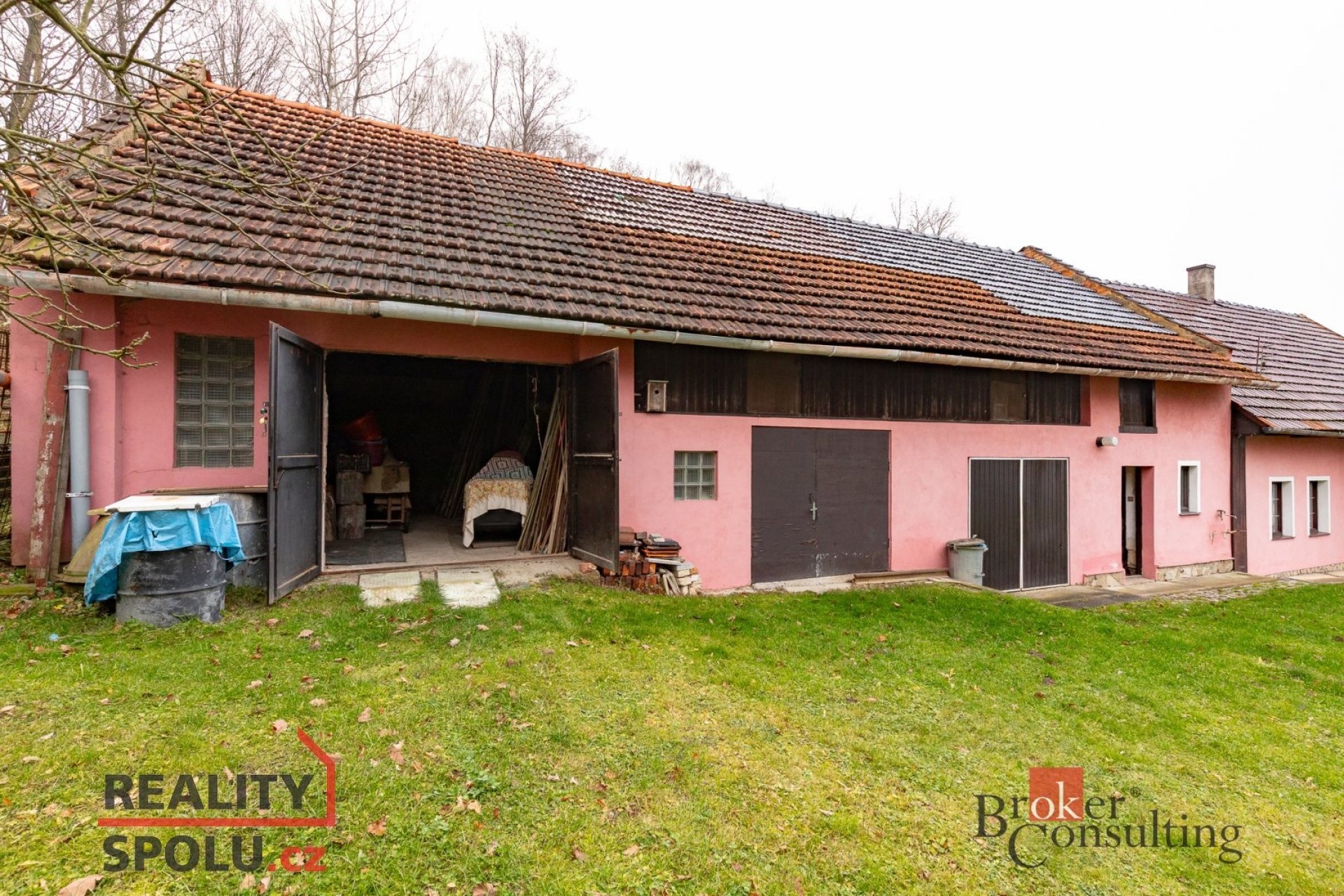 K domu náleží tři kůlny a jedna garáž, které jsou vzájemně průchozí. Díky zachovaným vysokým stropům zde vzniká možnost rozšíření obytné části – jak v přízemí, tak i v patře. Prostory lze využít také ke komerčním účelům.