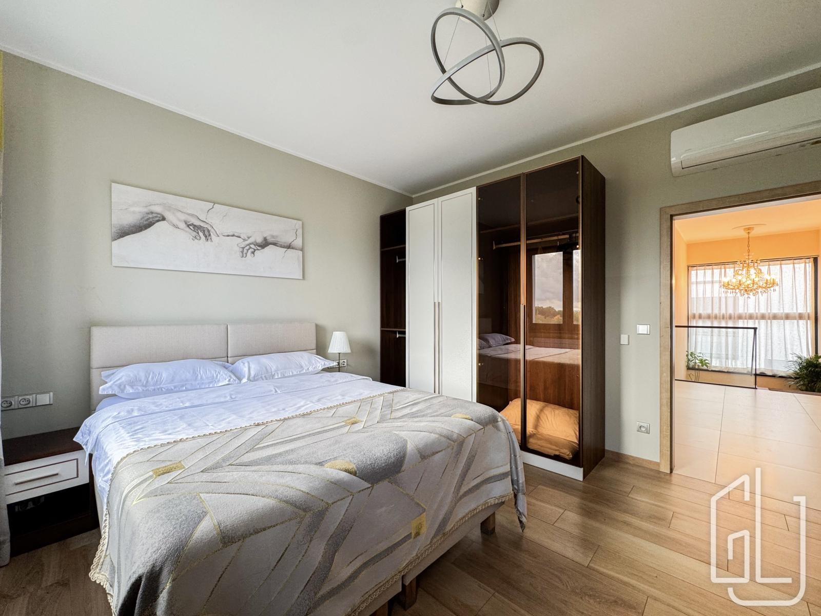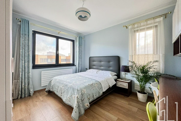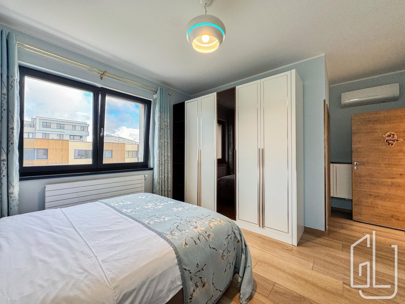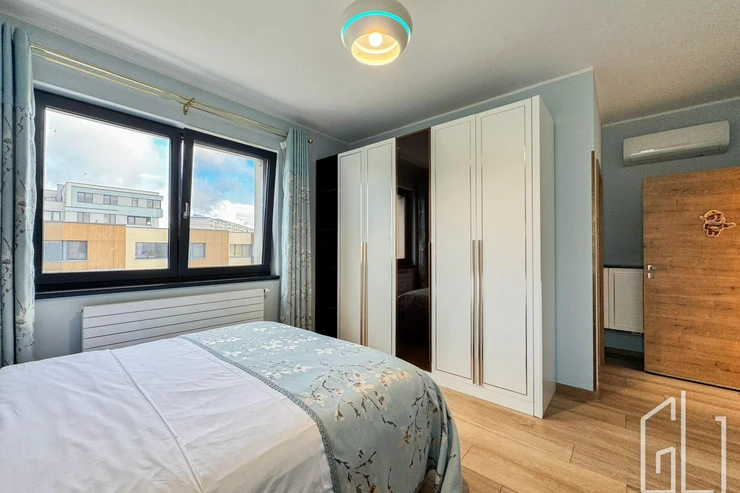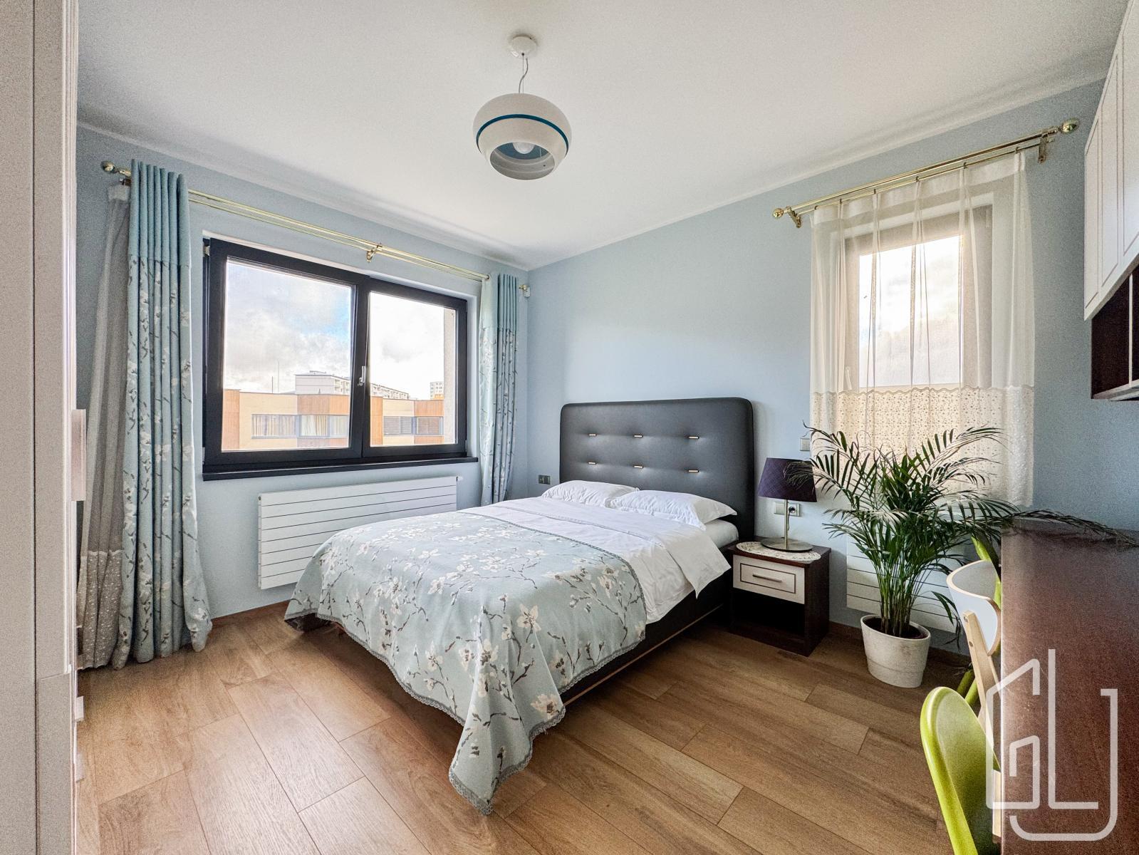 Součástí patra jsou také dva prostorné balkony (každý o velikosti 7 m), které poskytují výhled do zeleně a zajišťují maximální soukromí.