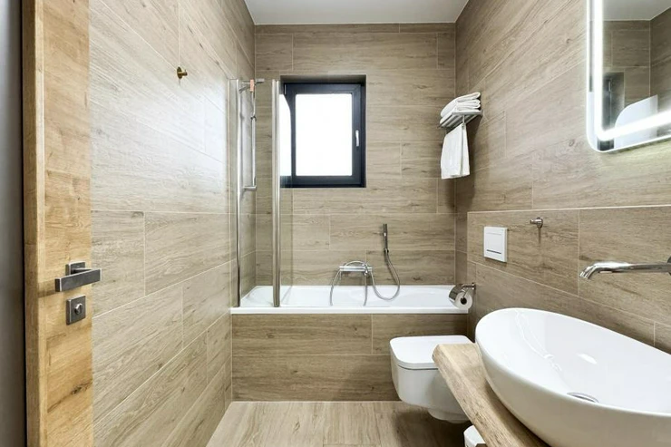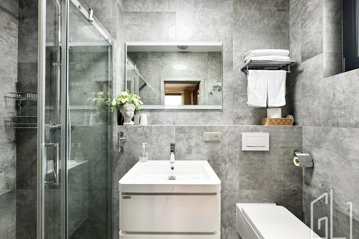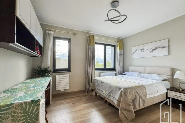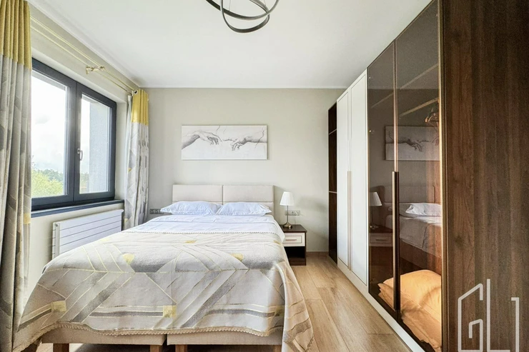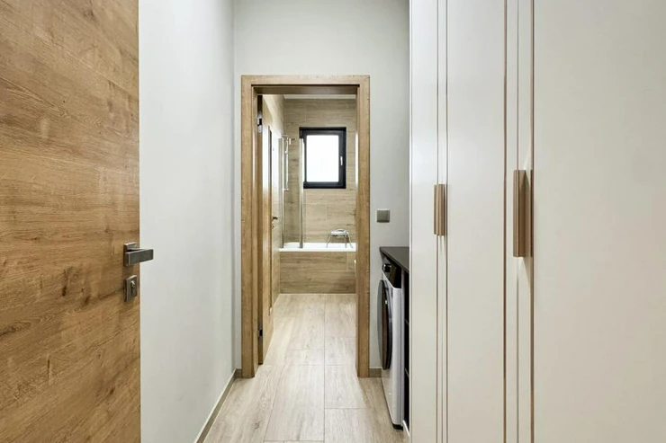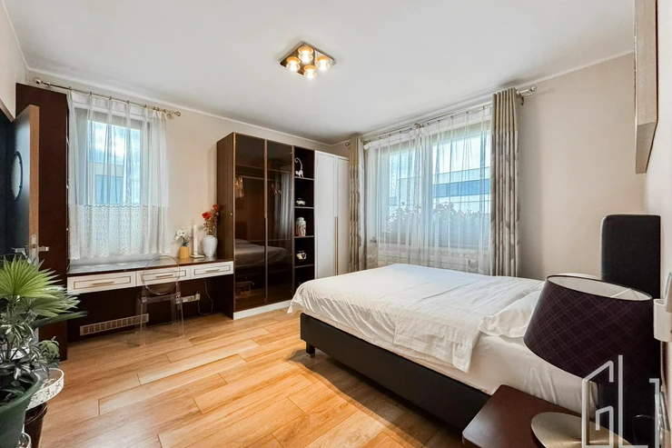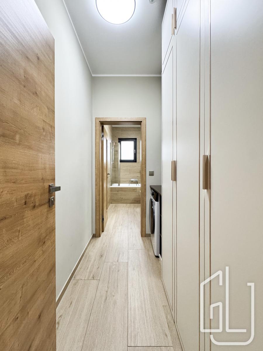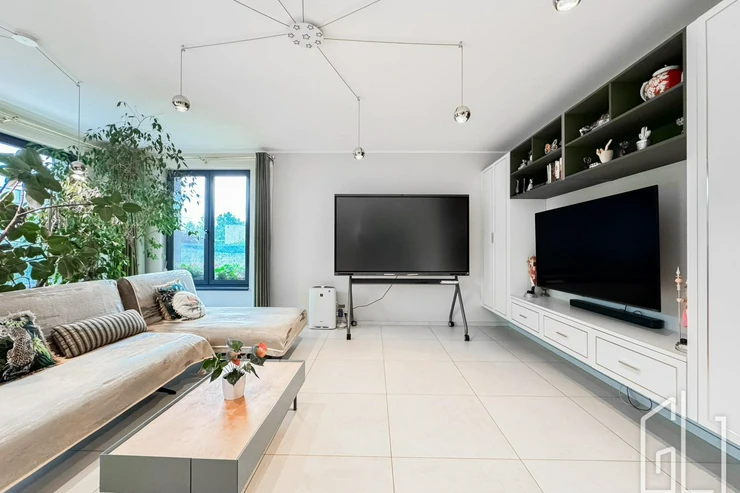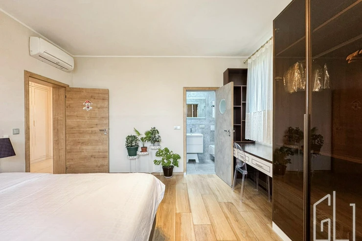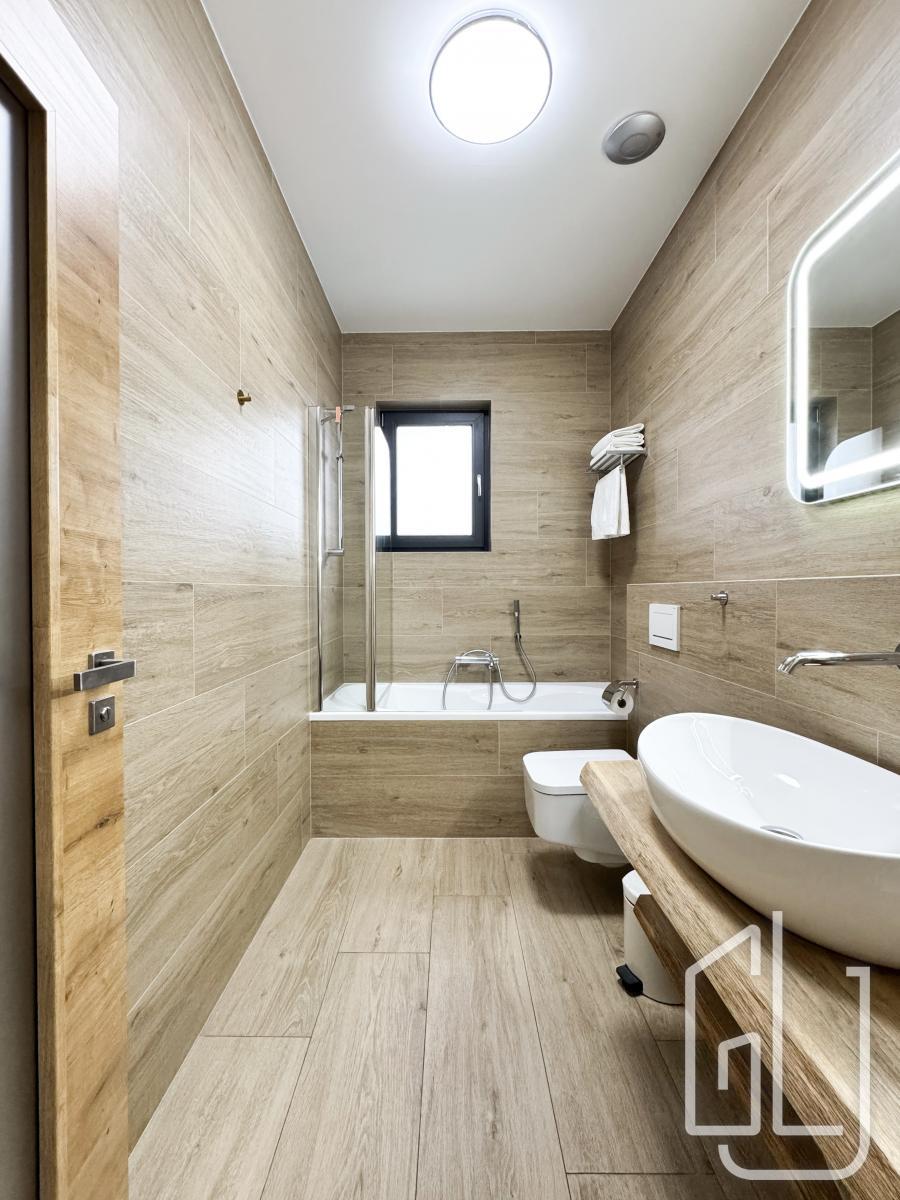 Celý dům je proveden v nejvyšší kvalitě materiálů dřevěné podlahy, kamenné obklady, podlahové vytápění, klimatizace, velkoformátová okna s izolačním sklem a chytré osvětlení.