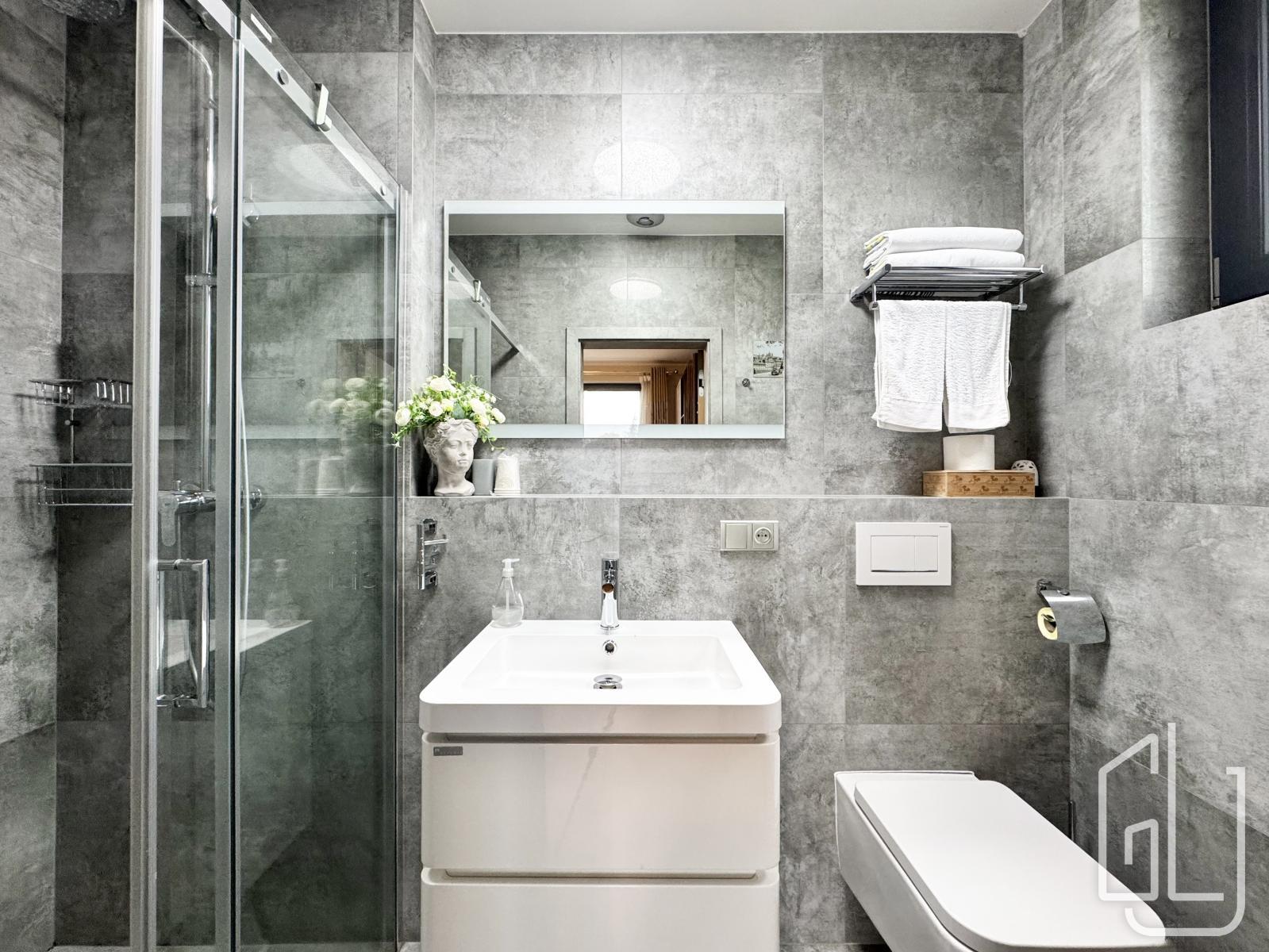 Další komfortní koupelna je přístupná z chodby.