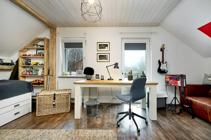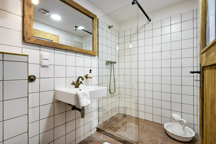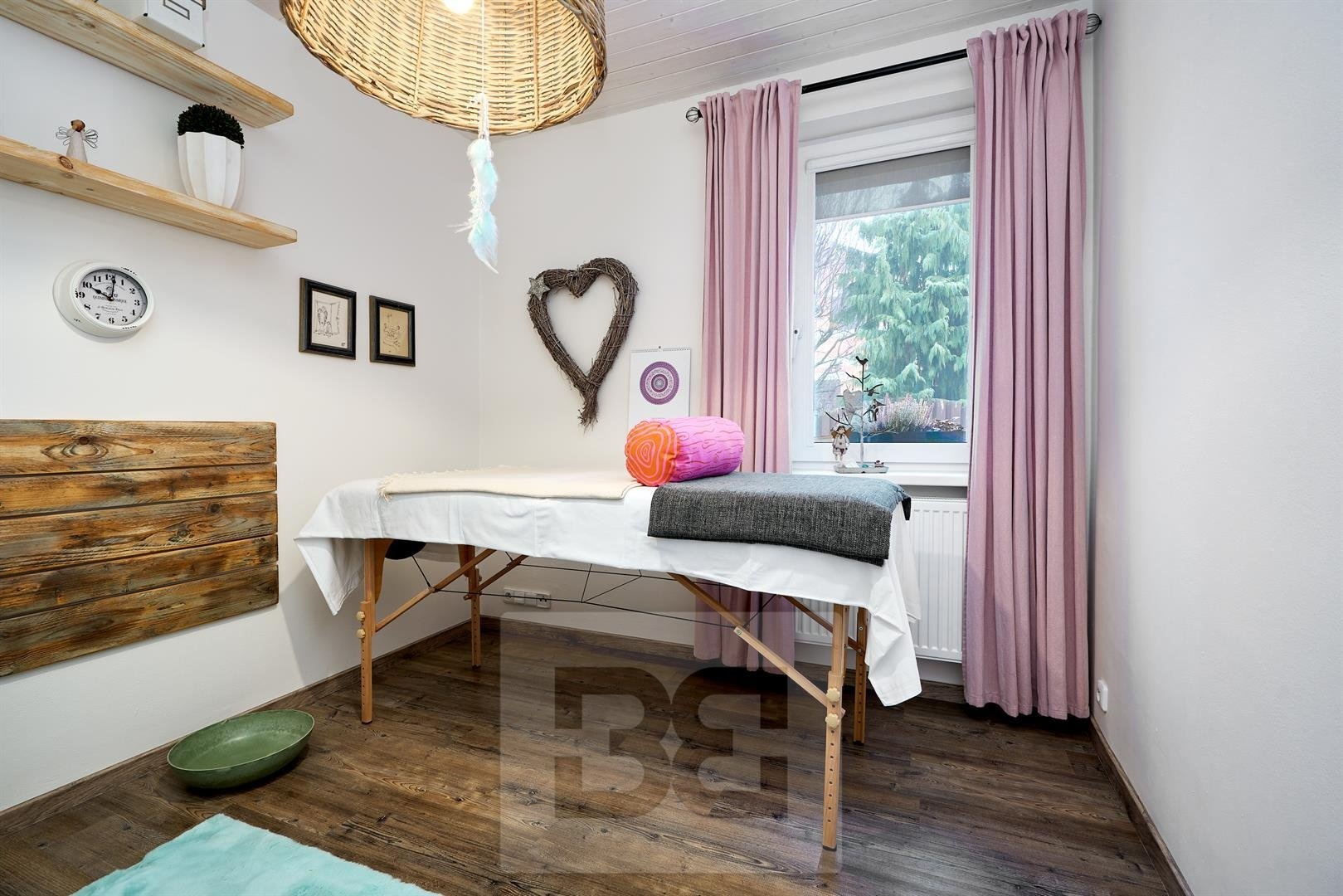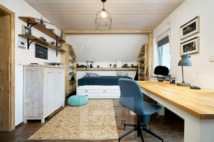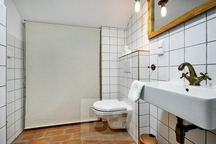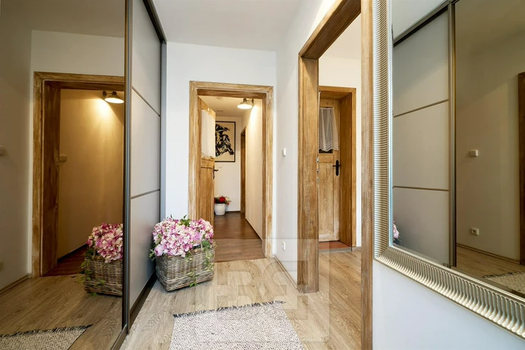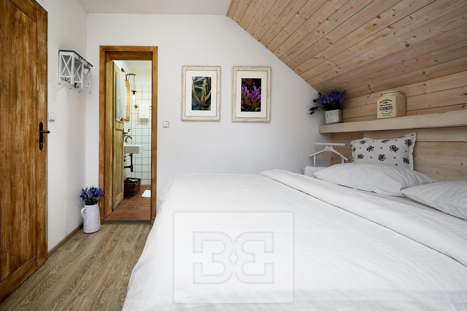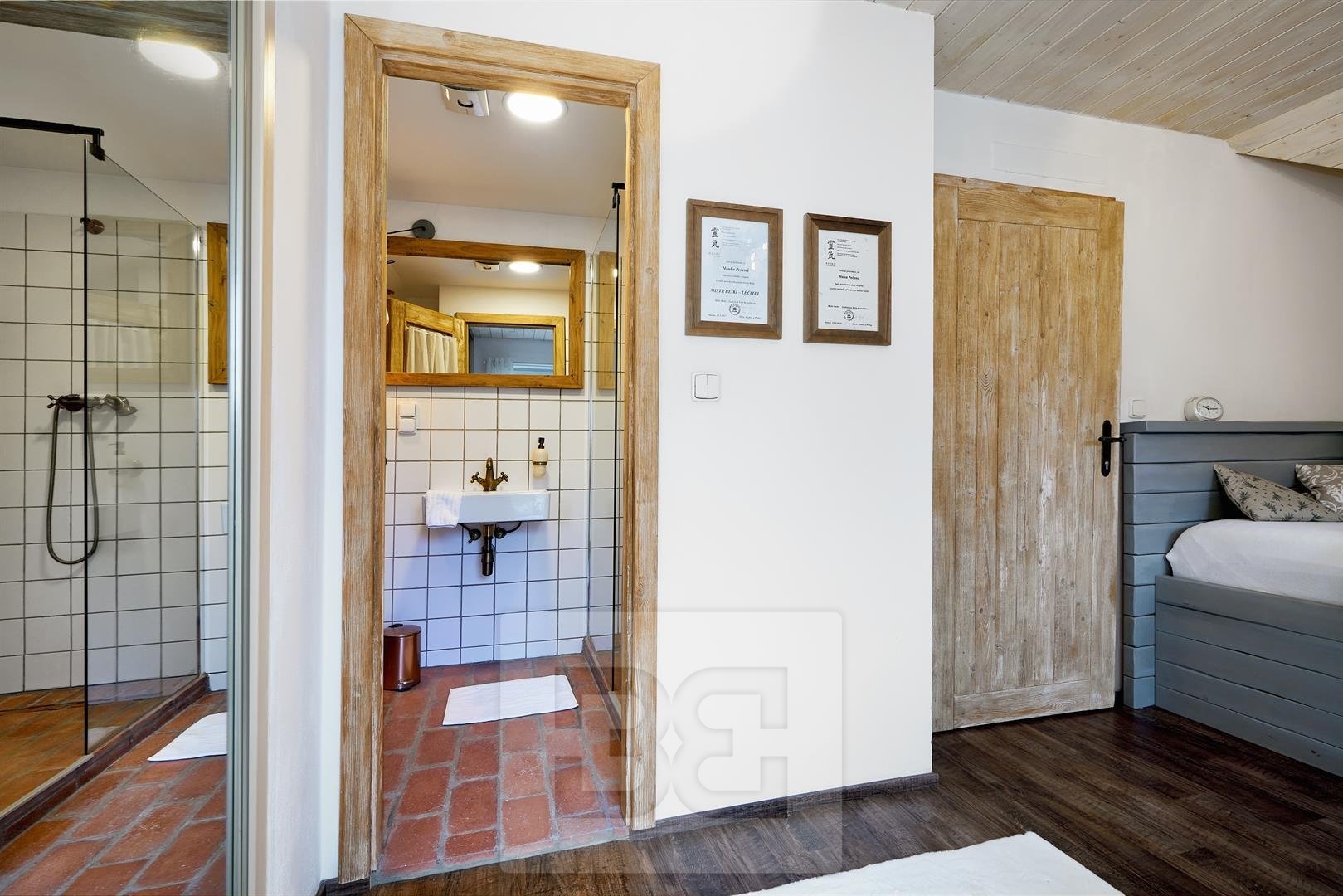 After entering the house, we enter a spacious dressing room, on the right is the first room. Next, there is a room with a staircase to the second floor, a spacious kitchen with appliances (dishwasher, hob, fridge-freezer, oven) in the shape of the letter U, next to which there is a spacious living room, from which there is an entrance to the terrace offering a beautiful quiet space for rest. The second floor can be reached via an internal but also an external staircase, thanks to which both floors can be used independently, and thanks to 3 bedrooms and three bathrooms (2x shower, 1x corner bath), there is also the possibility of a rental, thus turning the purchase of this house into an interesting investment or use the property as a multi-generational property.