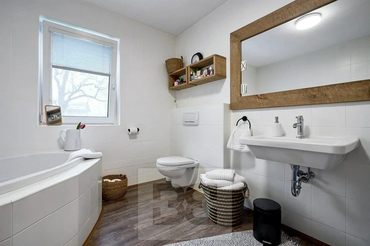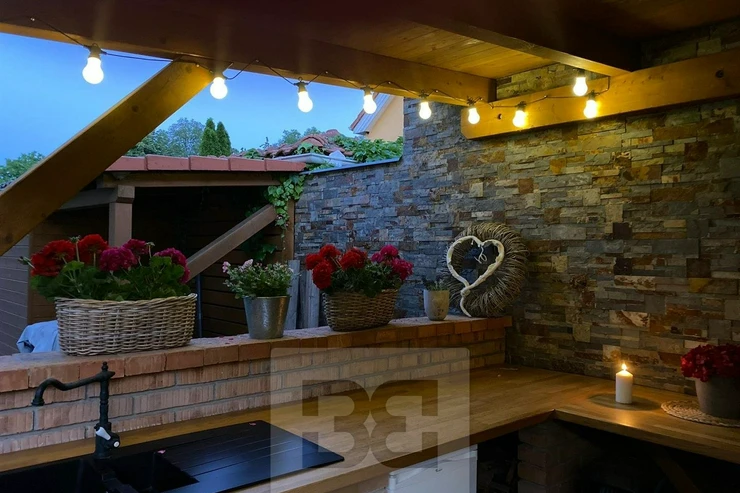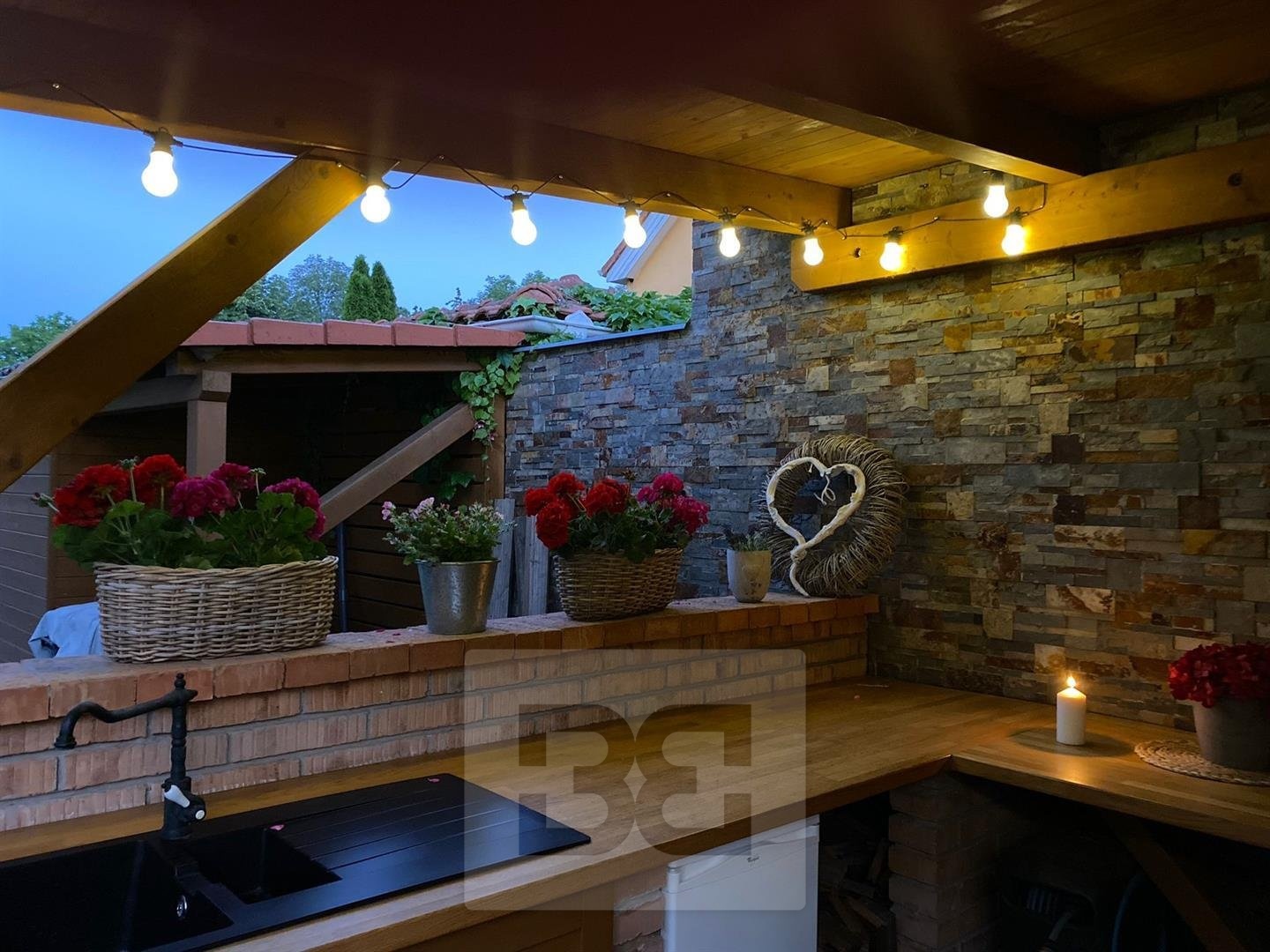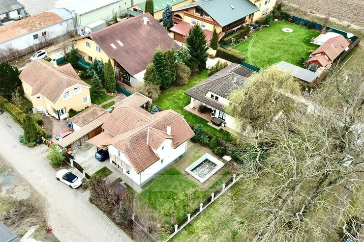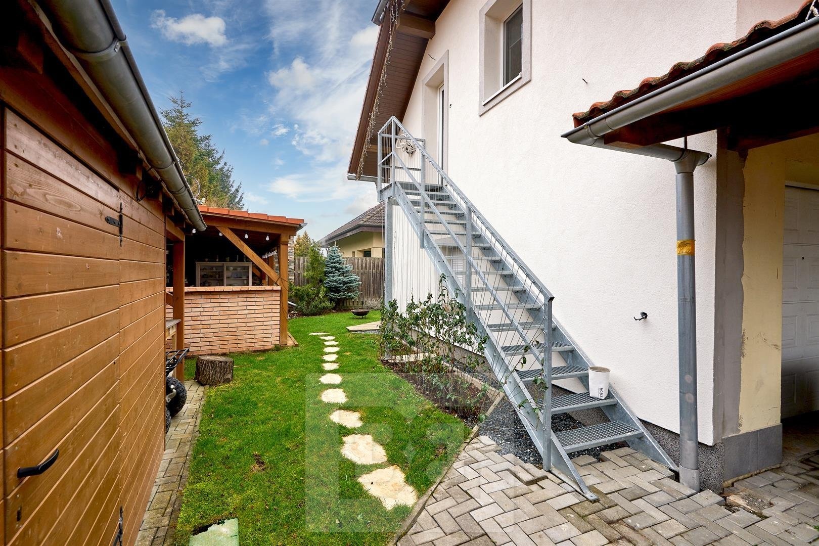 The house, which was built in 2005, is situated on a rectangular plot (approx. 21x25m) with an area of 490sqm, where there is also a pool of 5x3m, a covered pergola with an area of 18sqm with a kitchen and storage areas/shed on the left side of the house. Within years 2021-2023 was the house reconstructed - new high-quality plastic windows with insect nets (insulating triple-glazed windows) around which there are decorative shutters (outdoor blinds are installed on the 1st floor), the insulation of the facade, the installation of a high-quality Vaillant heat pump (through heating elements, there is underfloor heating in the bathroom with a bathtub), which makes the operation of this property very economical. On the first floor there is quality wooden flooring and Italian tiles on the floor, on the second floor there is vinyl/tiles. On the ground floor, there are door frames from the company Divine Furniture & Design, which beautifully complement the interior design. Quality movables thinks can remain as agreed.