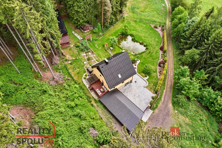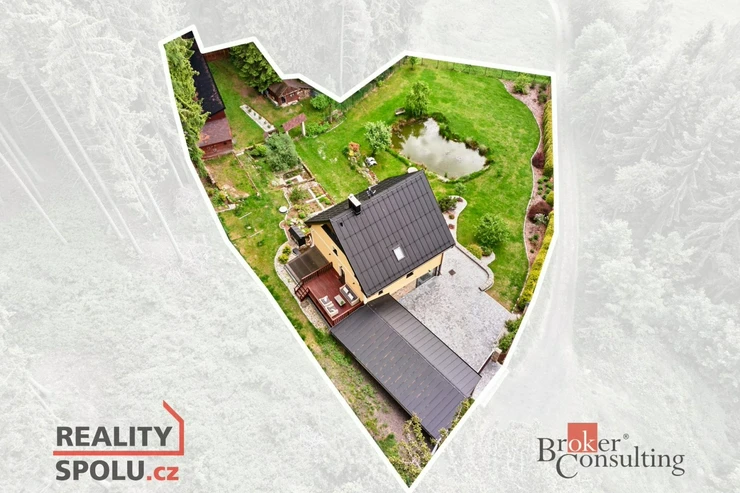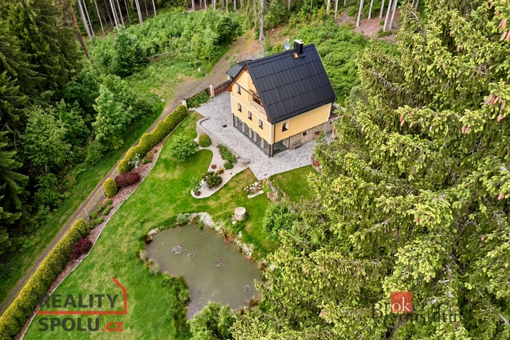 Jezírko uprostřed zeleně, zahrada jako ze starého herbáře, vůně dřeva a bezpečí zdí, které znají jen lásku.