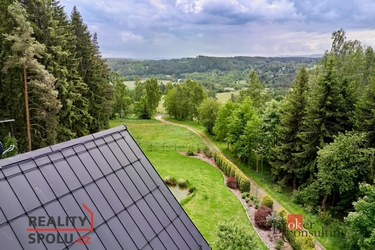 A pak pozemek. Přes 2200 m² volnosti. Dvůr střežený kamerovým systémem. Tři vjezdy, parkování pro šest aut, a ze stájí řehtání koní. A to ticho. Takové to opravdové, co už ve městech přestalo existovat. Tady příroda není kulisou, ale součástí každého dne.