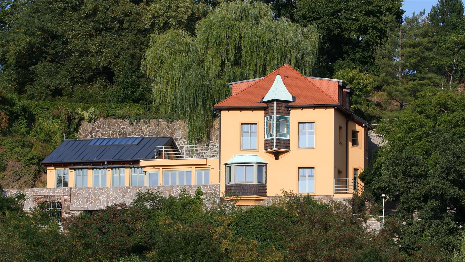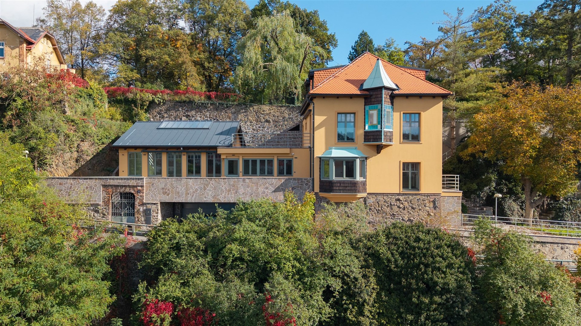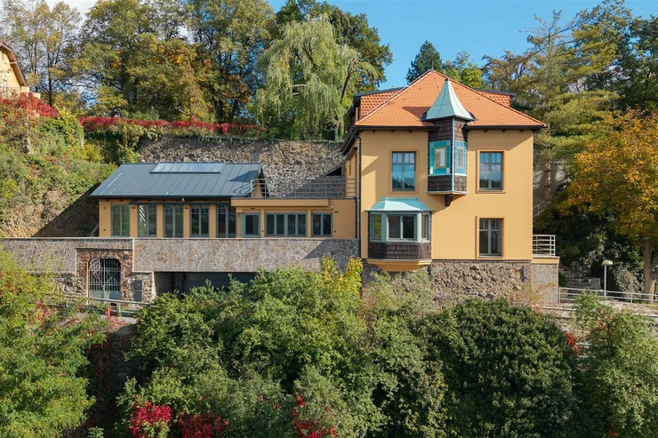 Discover this one-of-a-kind villa perched above the river, where historic charm meets contemporary luxury. Boasting views of the flowing water, this property offers versatile, thoughtfully-designed spaces that cater to modern living and sophisticated taste. True TROPHY HOUSE.