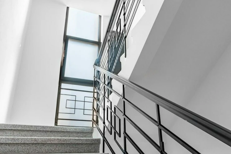Preserved original elements include, for example, the staircase with windows, the original renovatedterrazzo in the hallways and on the staircase.