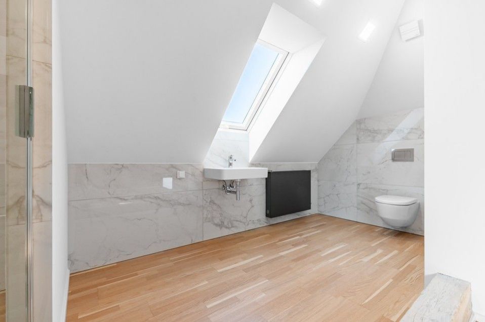 The layout includes 3 floors and a basement, on the 1st floor there is an entrance hall, a generous open space of the living room with a dining room and a fully equipped kitchen and direct access to the newly built spacious terrace with access to the garden, a separate toilet, on the 2nd floor there are 2 bedrooms with a large separate bathroom with a bathtub and a shower, another toilet, on the 3rd floor there is a residential attic with an interestinga spacious, unobstructed space with preserved original beams and an interestingly designed bathroom and toilet. This part of the house invites the placement of a relaxation and sleeping area for residents - a master bedroom with an en suite bathroom. The technical facilities of the house are located in the basement, including a bathroom, toilet and two other rooms with windows to the garden.