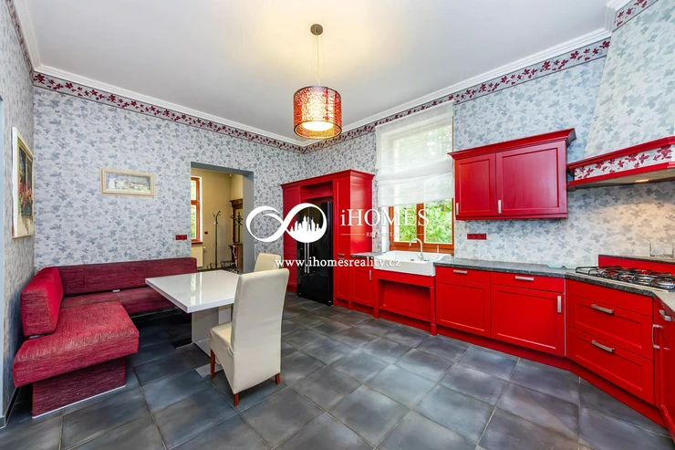 The layout of the main villa is 7+kk and has an area of 470 m2. It was built in 1903 and a complete renovation was carried out in 2010.