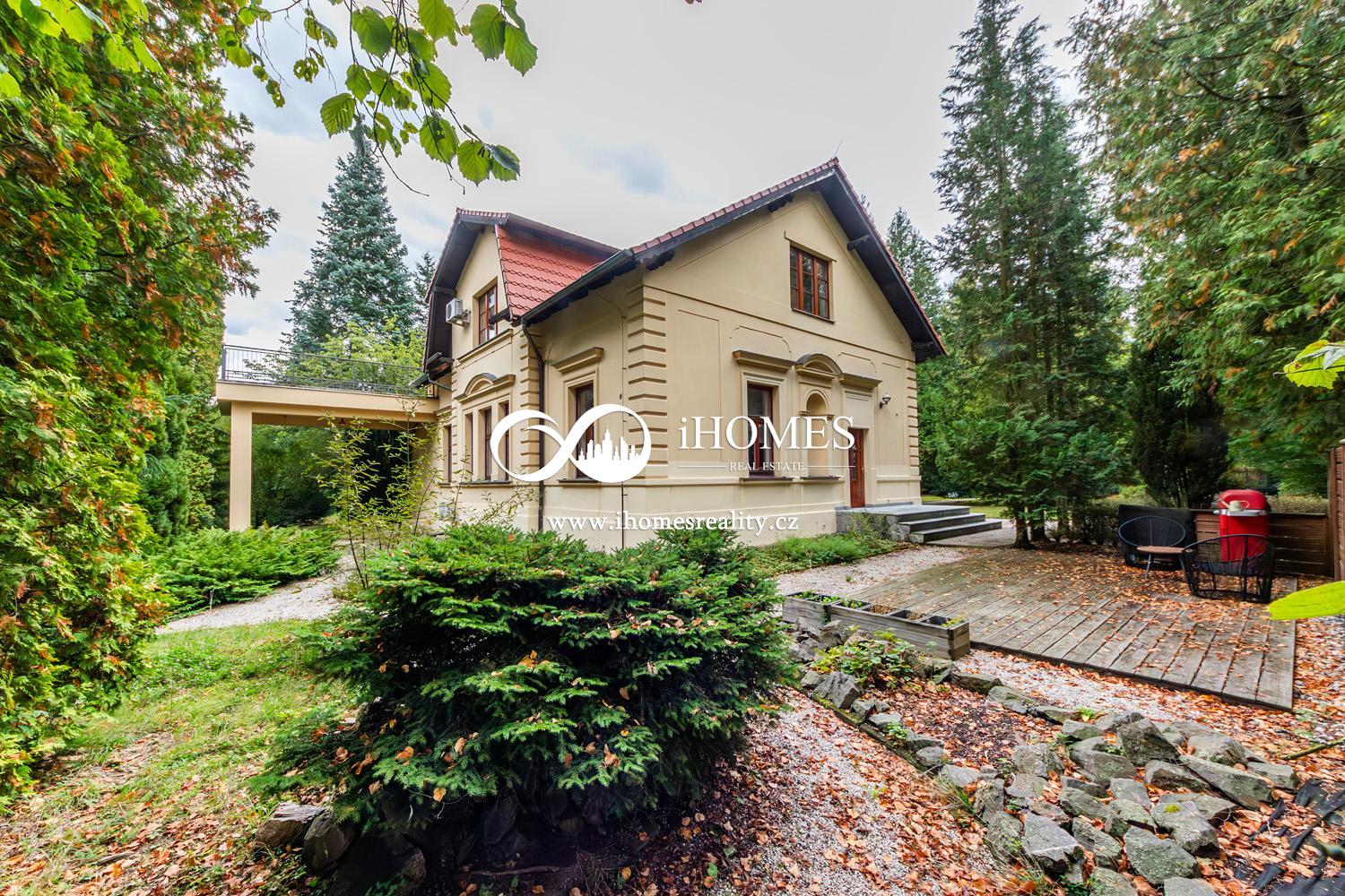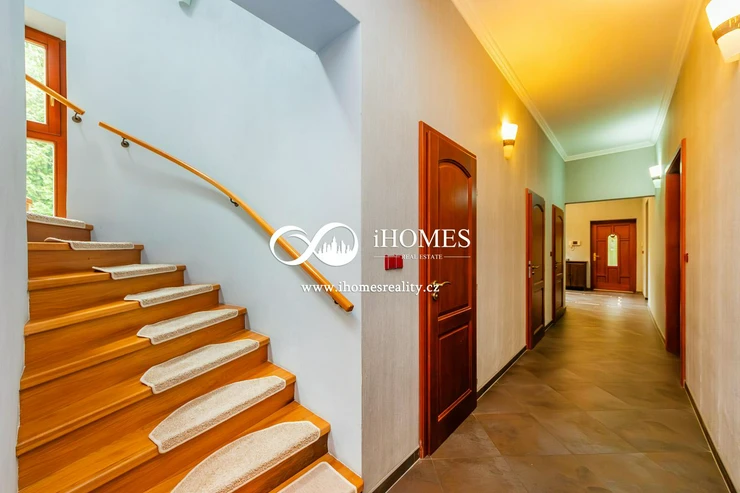 iHomes real estate offers for sale two exceptional properties in the quiet residential area of Unhošt and #39;, located on the border of the Křivoklát Highlands and the Prague plateau, just 21 km west of the centre of Prague. These properties include a carefully renovated family villa from the First Republic period and a smaller guest house, both surrounded by a beautiful park garden with abundant mature greenery, ensuring complete privacy and tranquility.