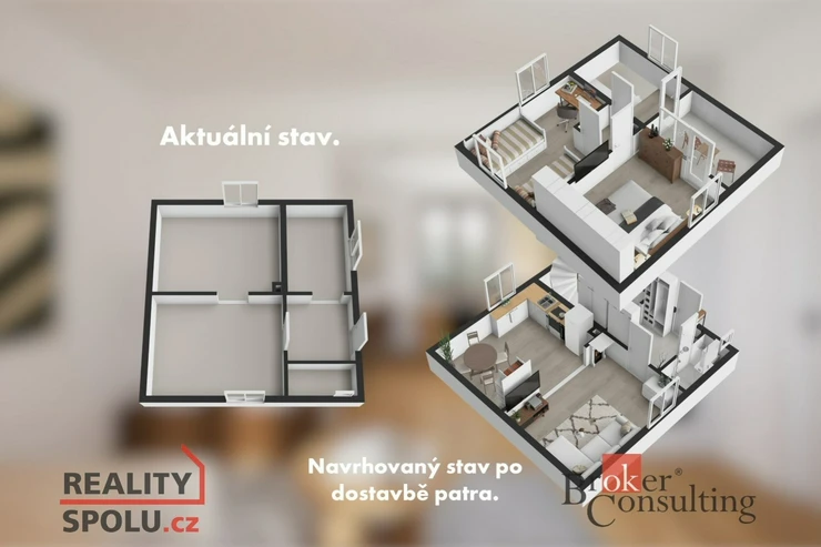 • obytná plocha 36 m², po rekonstrukci 72 m²