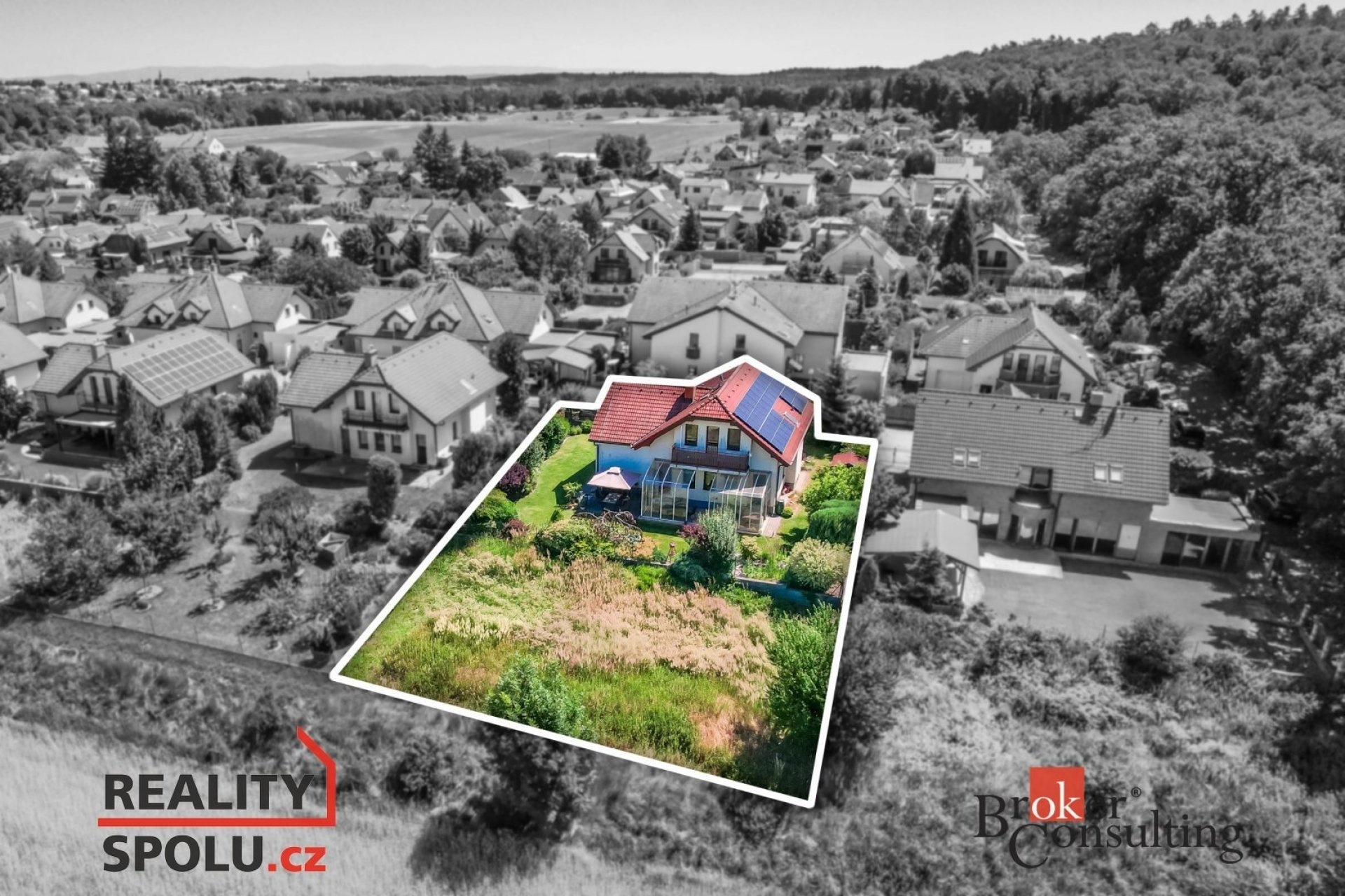 Na pozemku se dále nachází zavlažovací systém a robotická sekačka pro pohodlnou údržbu zahrady.