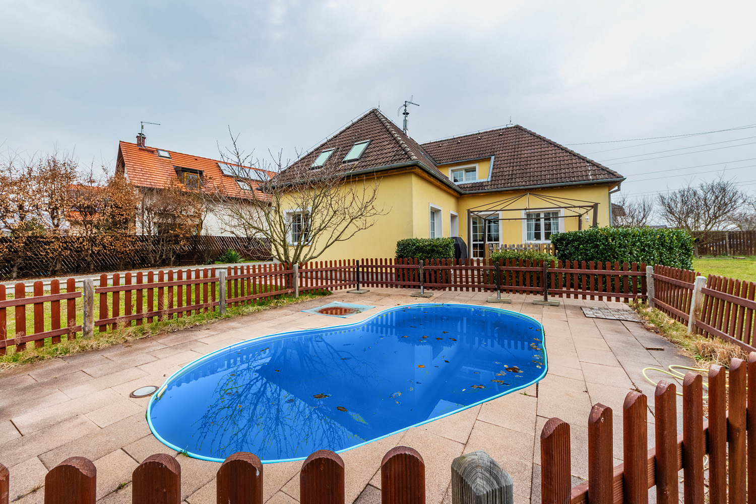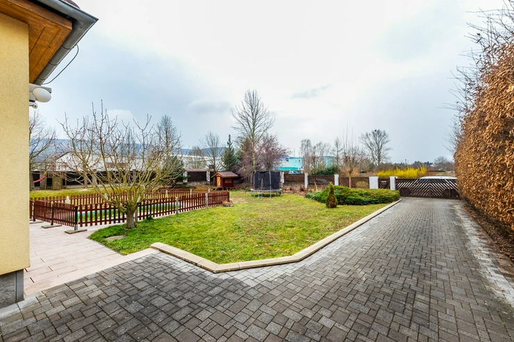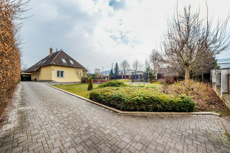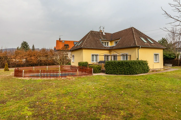 6+kk family house for sale, with pool, on 1417m2 land in Dobřichovice. We offer a spacious and bright family house with a layout of 6+kk and a usable area of 189m², located on a 833m2 plot. The sale also includes an adjacent second plot of 584m2, currently used as a garden, which has great potential as it allows for further construction and has its own access from the street. The house is ideal for a larger family, offering plenty of privacy and storage space both inside and on the well-maintained garden.