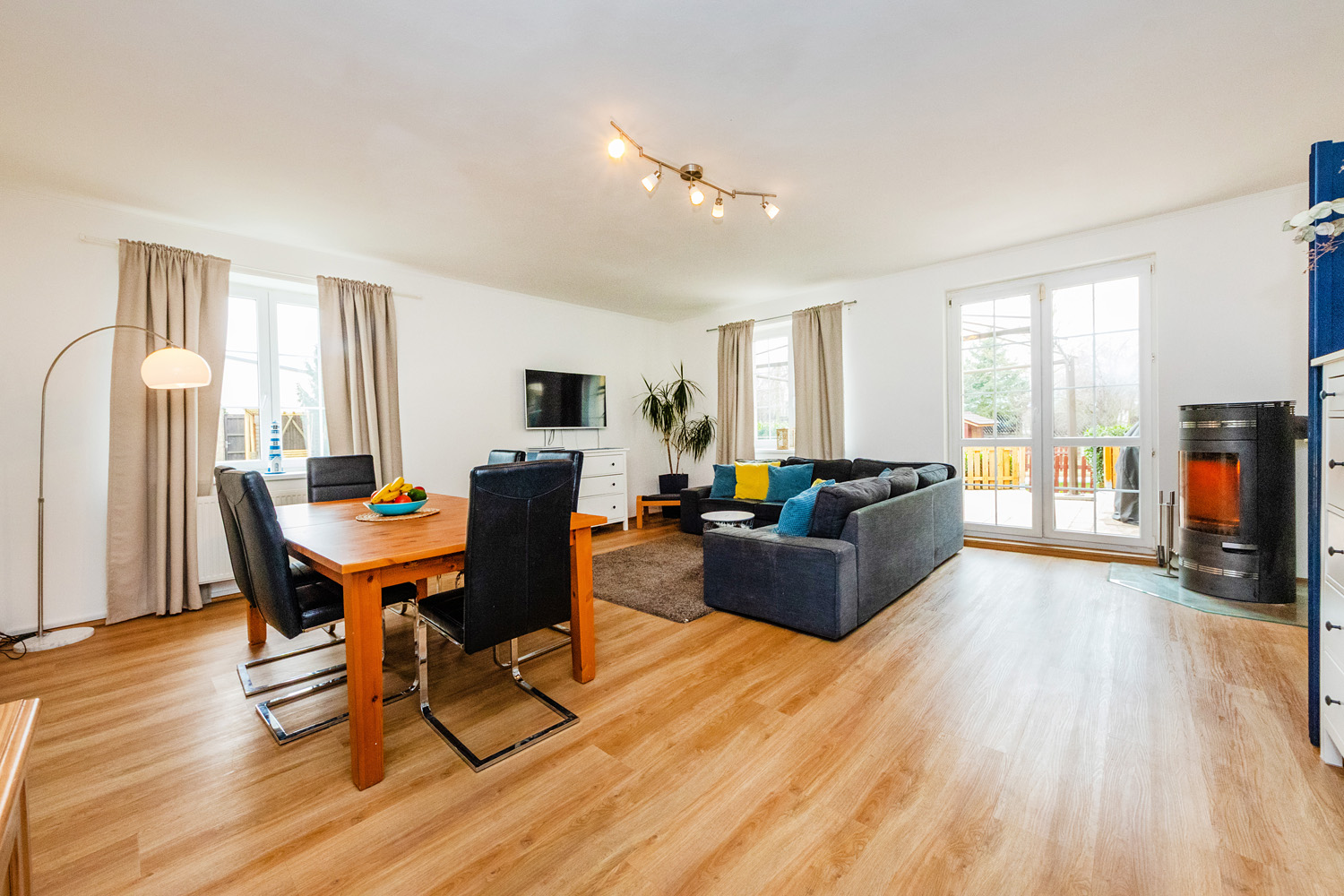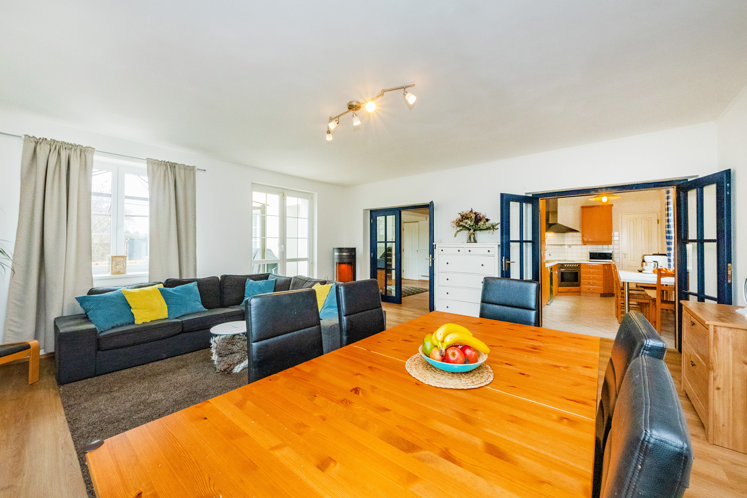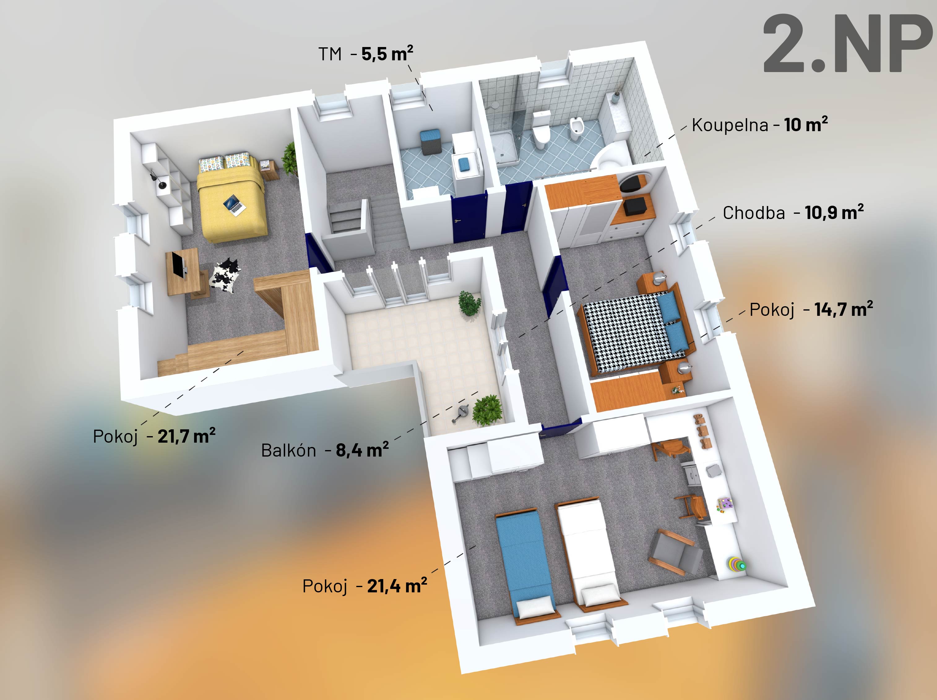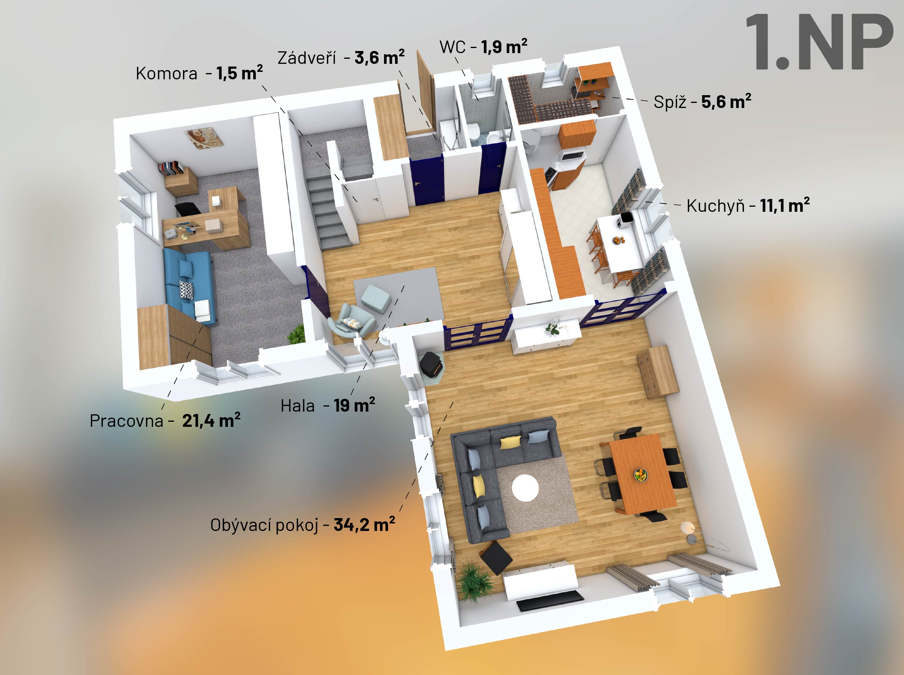 The first floor (93m²) offers: 3 bedrooms with built-in furniture, a bathroom (bath, shower, toilet), a laundry/technical room, and a balcony. The house has plastic windows, electrical security system, gas heating plus wood stoves in the living room, a carport for two cars with an attic (approx. 36m2) for storage, a workshop which can also be used as a bike storage, and its own well. The house is eligible for a renovation grant.