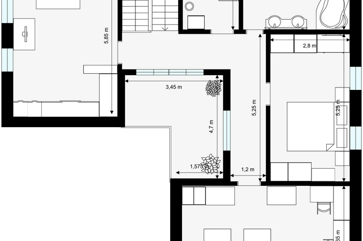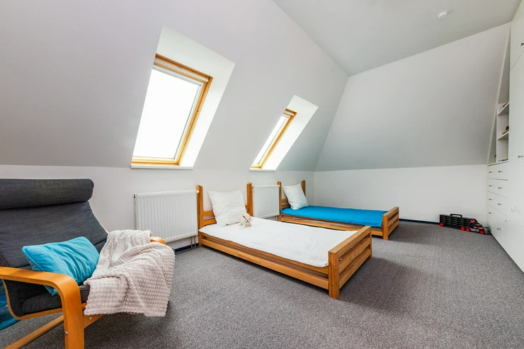 The property includes a beautiful garden with mature trees, outdoor seating, and a pool, perfect for relaxation and family activities. The house is a 10-minute walk from the center of Dobřichovice and a 10-minute walk to the train station to Prague or Beroun (4 trains per hour during peak times). It takes 20 minutes by train to Smíchovské nádraží (metro B) and 30 minutes to the main station (metro C). The plot is near the river and a cycling path along the Berounka River, making it an excellent starting point for trips into nature.