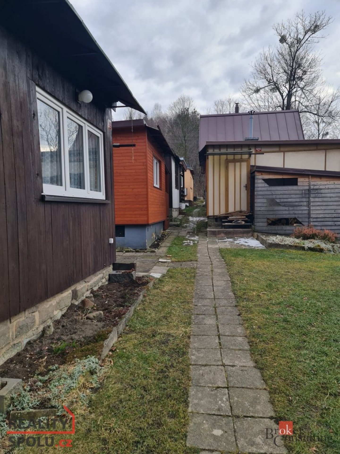 Parkování je možné uvnitř areálu, před plotem osady, ve které se chatka nachází nebo na přilehlých cestách. Inzerát obsahuje i fotografie s vizualizací, které pomáhají představit možné úpravy prostoru.