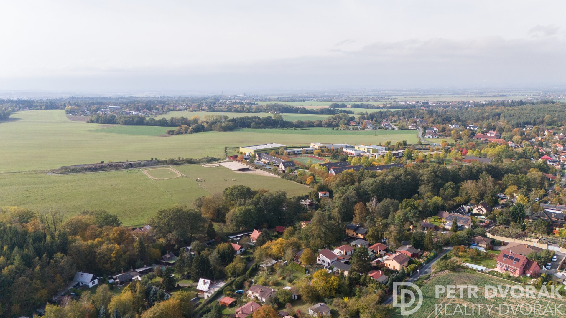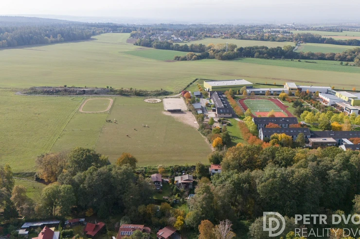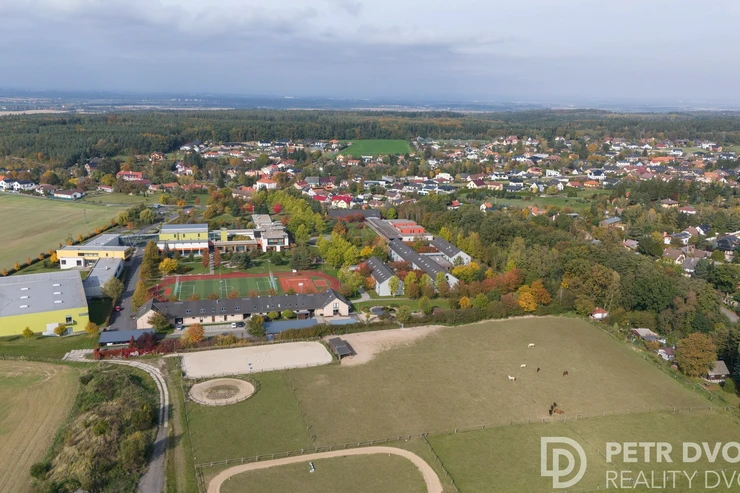 The plot directly borders the open green areas of the prestigious Open Gate school, where horses roam freely – creating a peaceful, unique atmosphere. This location offers the perfect balance of nature and convenience, just 30 minutes by car to central Prague or 20 minutes by train from nearby Kolovraty. Kolovraty is only a 10-minute drive from Babice.