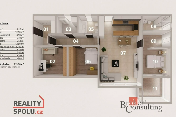Tento projekt kombinuje praktickou dispozici 4+kk s funkčním uspořádáním, prostornou užitnou plochou 110,8 m² a velkorysou zahradou o rozloze 1 103 m², což vytváří perfektní prostor pro rodinný život.