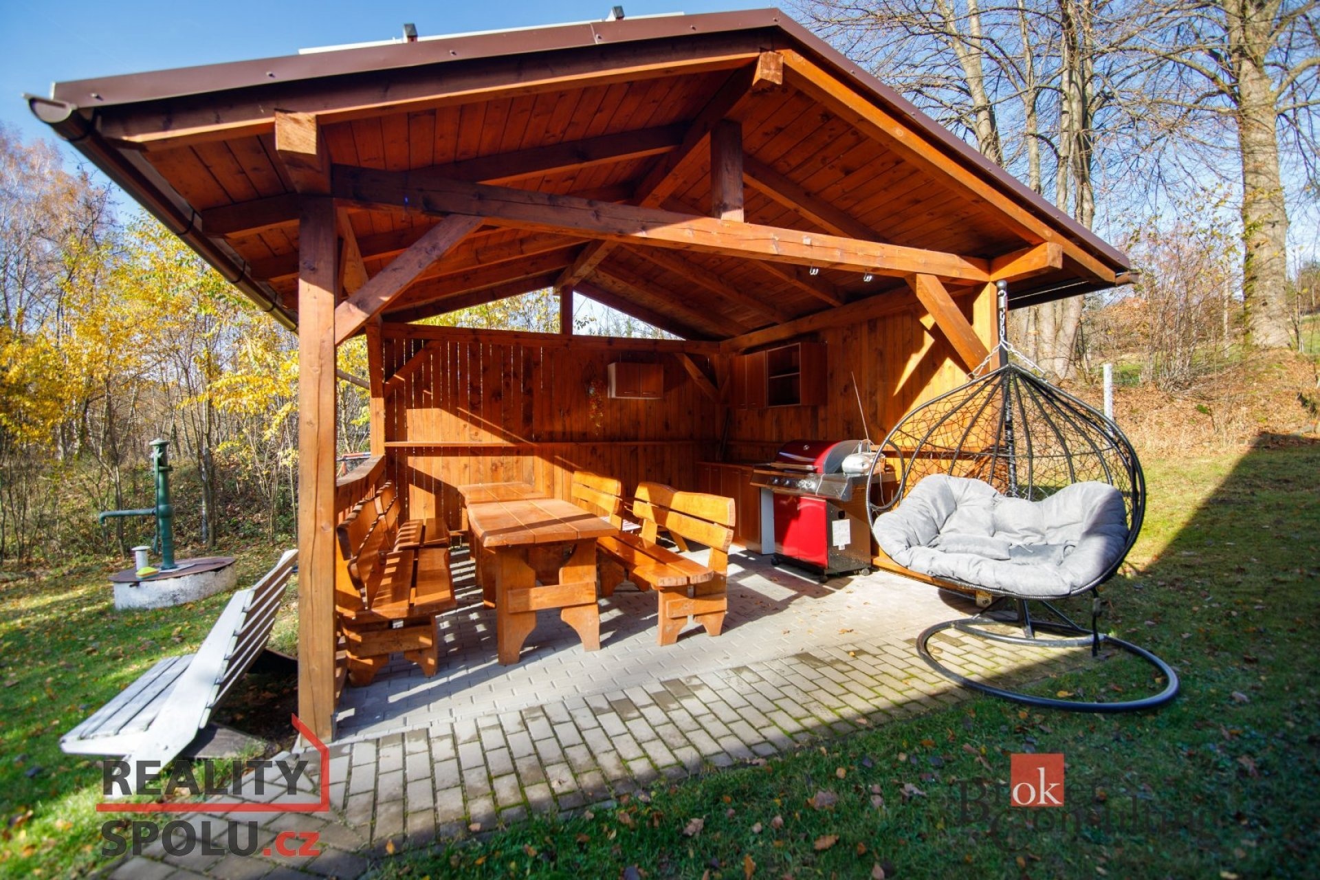 • Pergola s novým plynovým grilem, samostatná sauna,