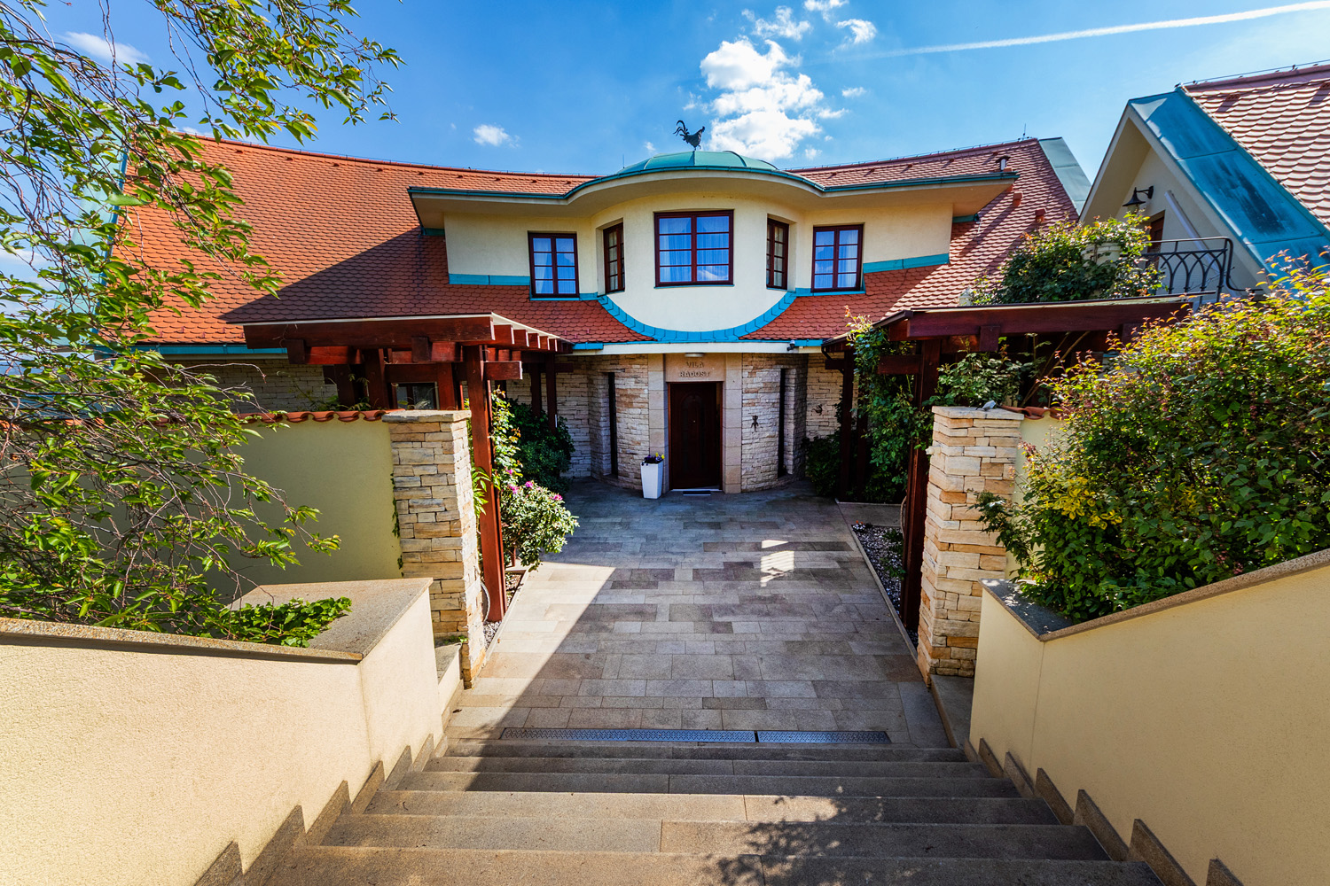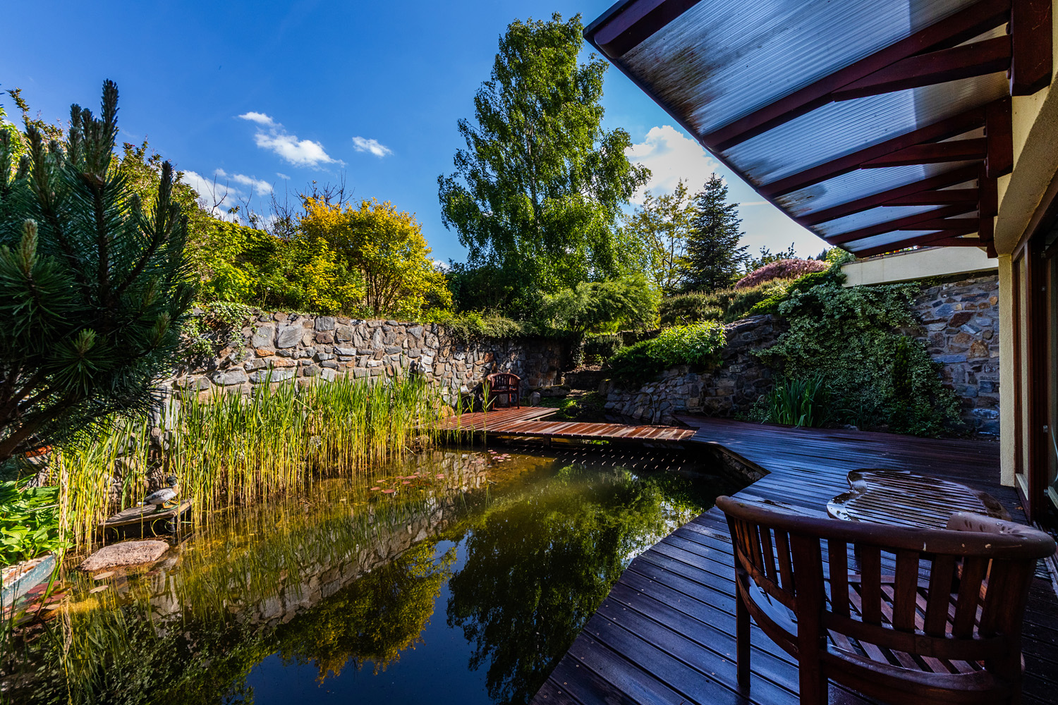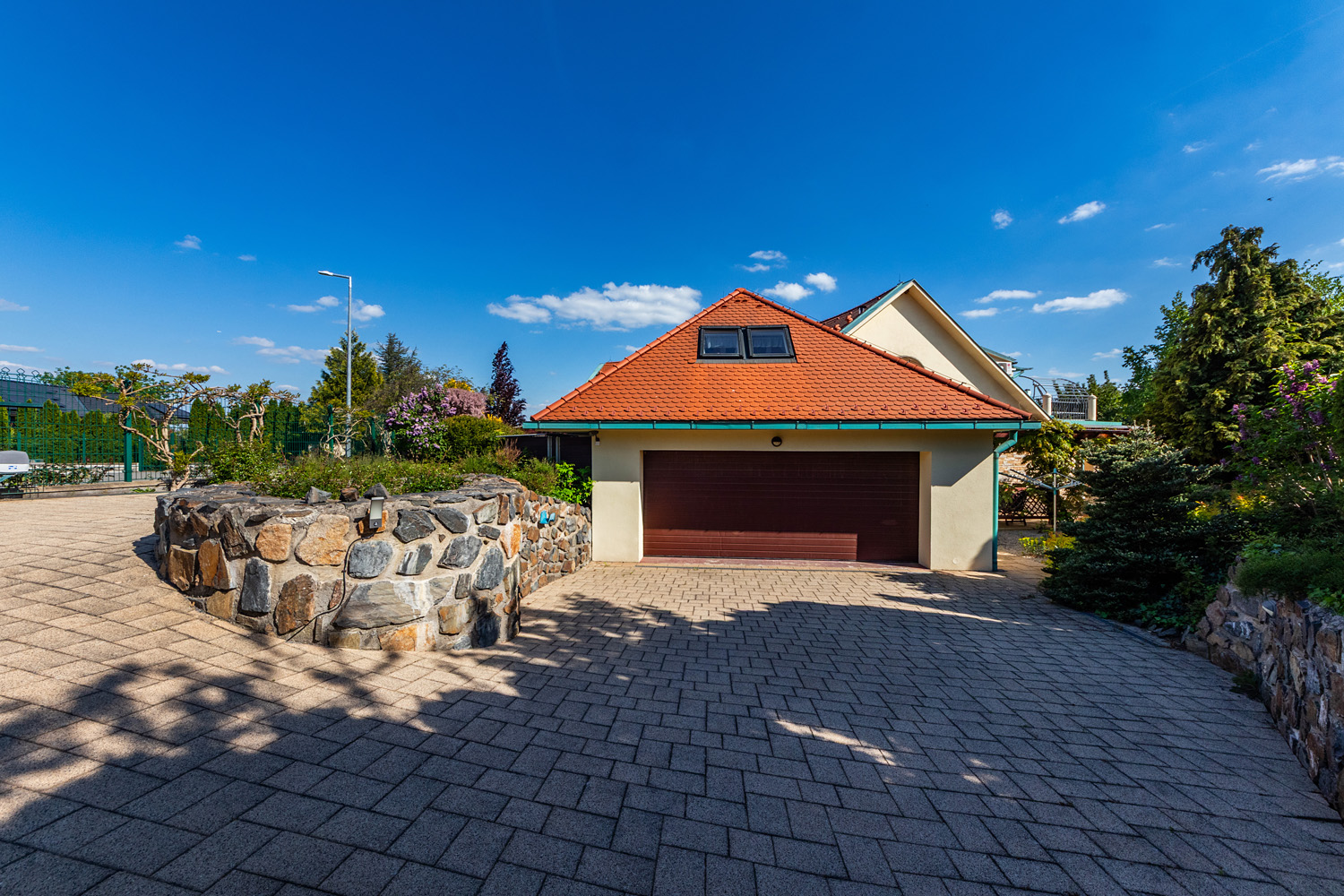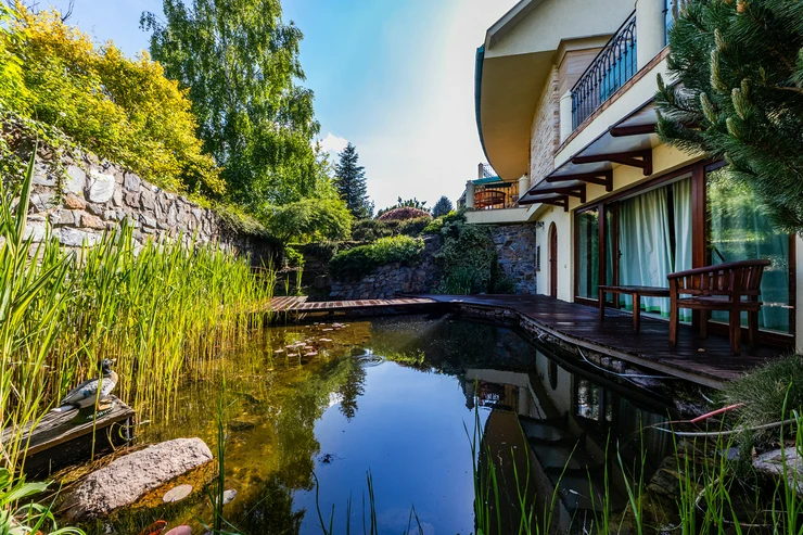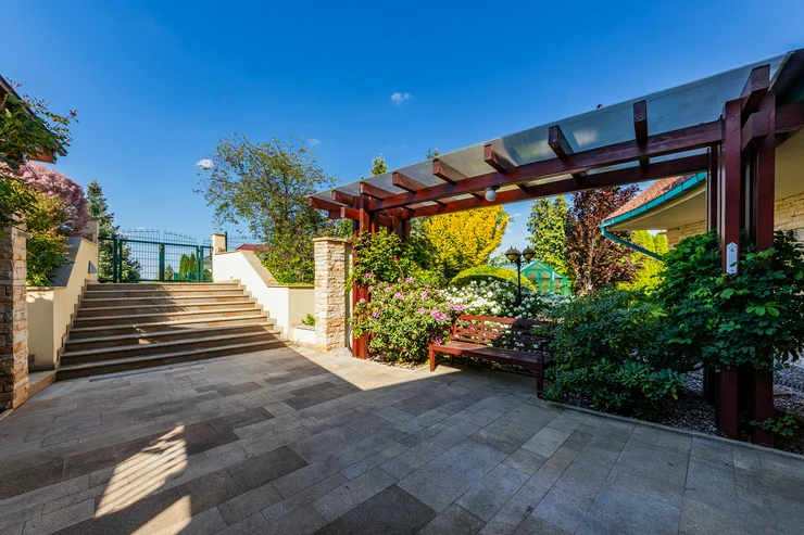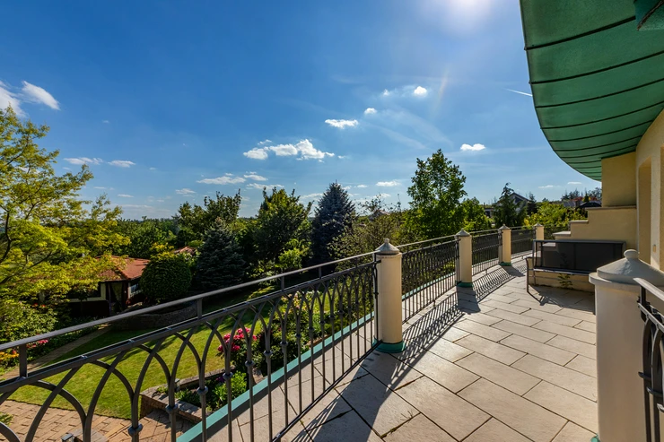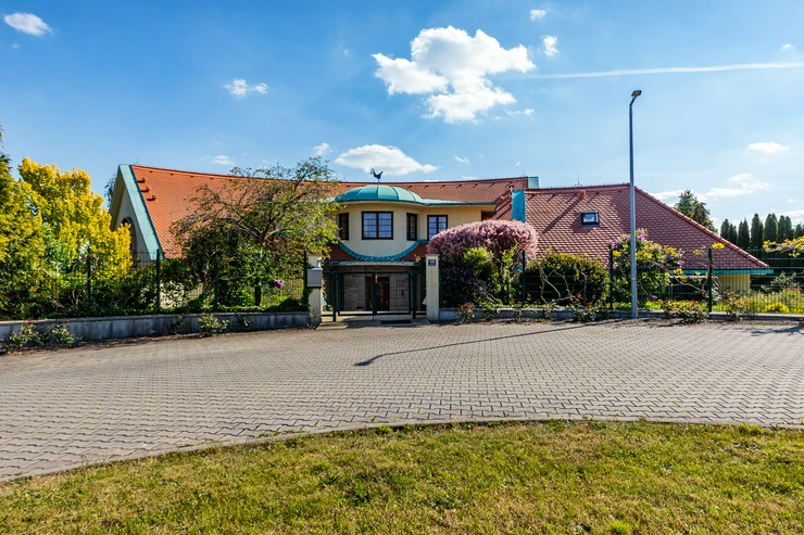 This representative villa with a usable area of 677 m² is located on a vast and meticulously maintained plot of 3,034 m² in the prestigious and tranquil part of the Trnová municipality, just a 30-minute drive from the center of Prague.