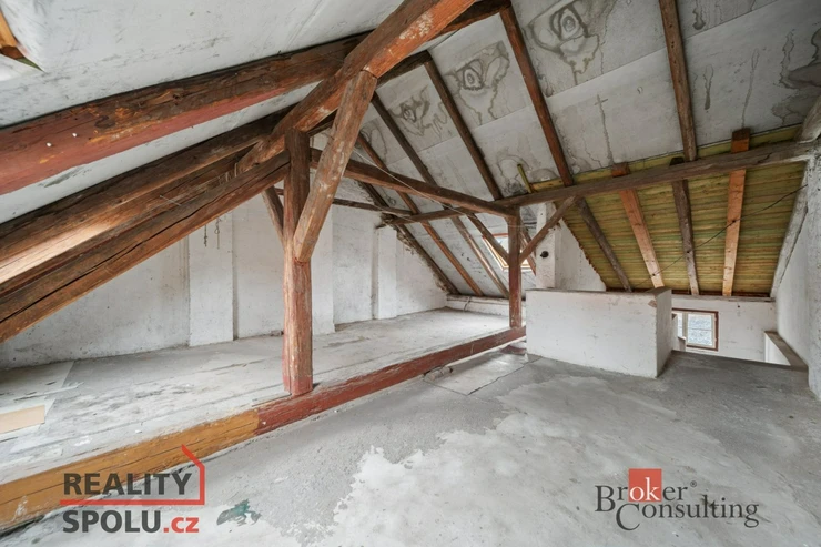 Podkroví dosud nebylo využíváno k bydlení, nicméně v rámci rekonstrukce je možné plochu o velikosti cca 42 m² přestavět a získat tak další obytný prostor.