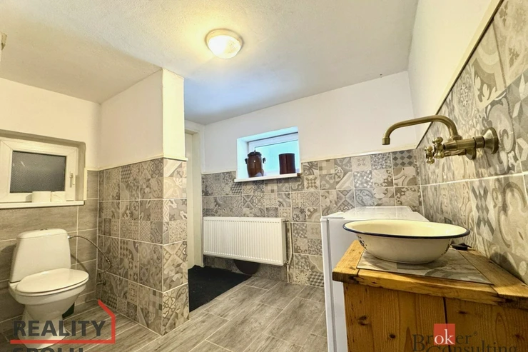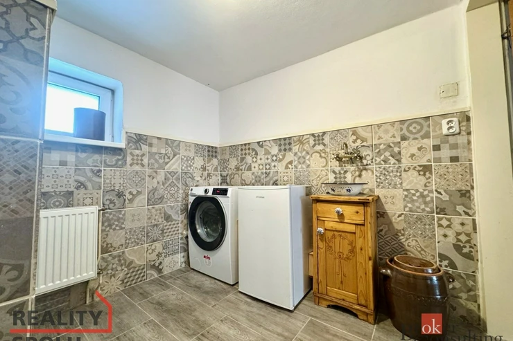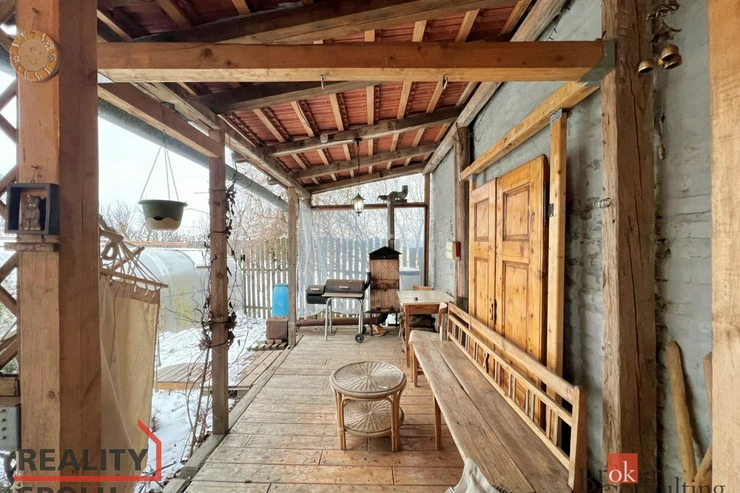Dům prošel celkovou úpravou, nové rozvody vody, elektřiny, topení a podlahy, je zateplený a připravený na finální fasádní nátěr. Vytápění zajišťuje elektrokotel nebo krbová kamna napojená na topný systém, ohřev vody bojler, střecha je krytá pálenou taškou a okna mají elektrické předokenní rolety.